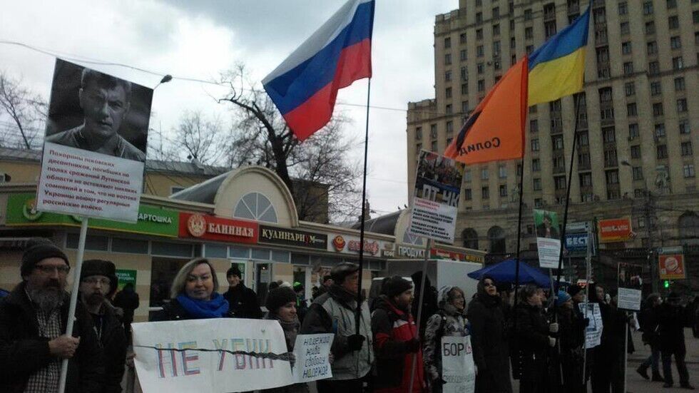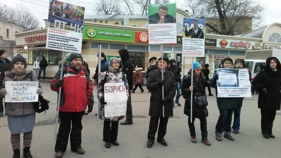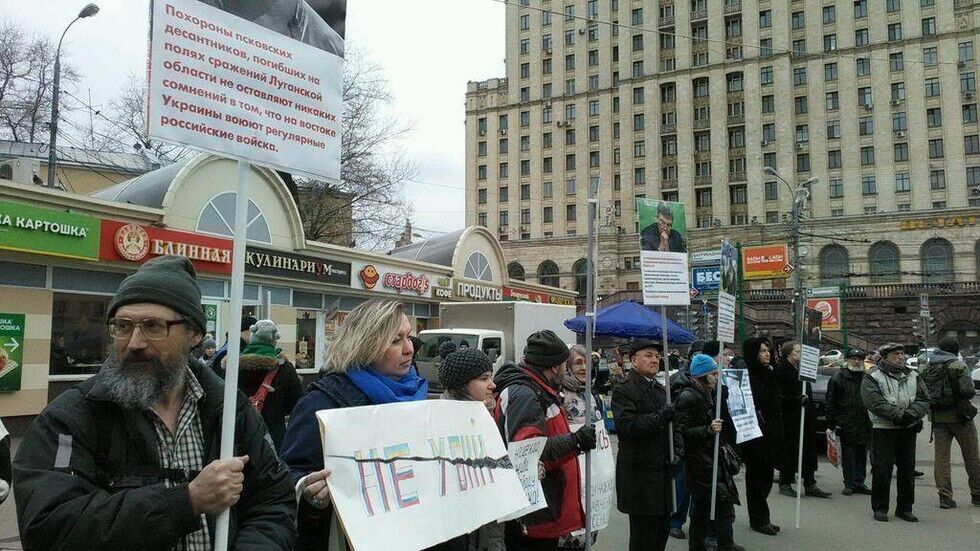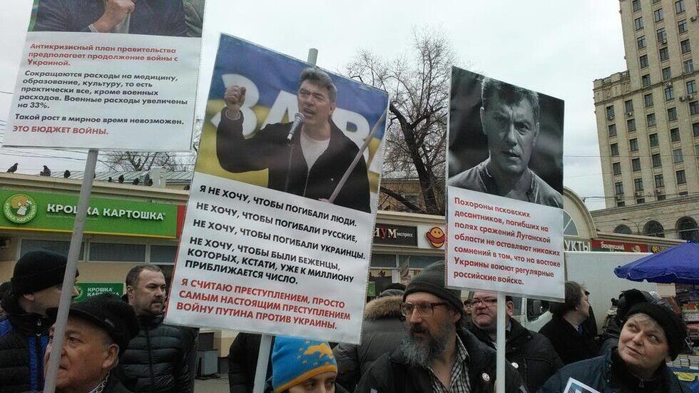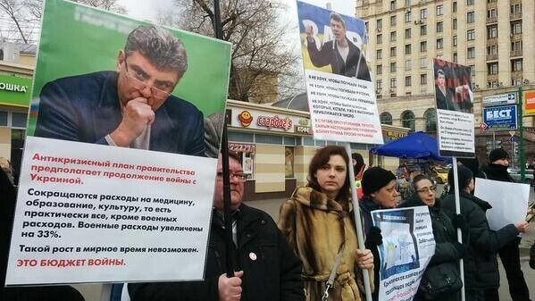 7 марта в Москве прошел первый после смерти оппозиционера Бориса Немцова антивоенный пикет, в котором приняли участие около 20 человек. Участники акции держали в руках плакаты с призывами прекратить военную агрессию против Украины, портреты погибшего Немцова с его антивоенными высказываниями, а также призывы освободить украинскую летчицу Надежду Савченко.