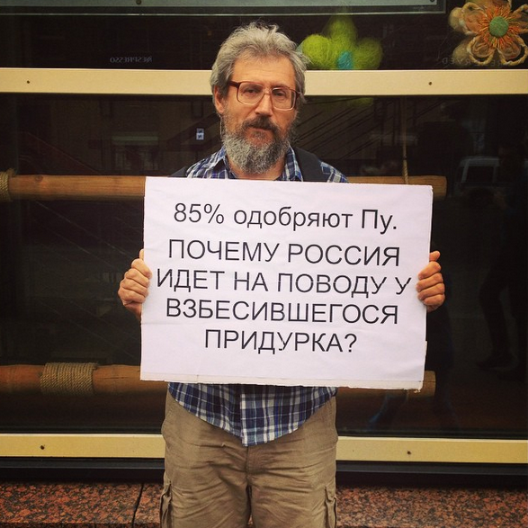 31 августа в Москве на Тверской улице состоялось несколько одиночных пикетов против агрессии РФ в Украине. Среди организаторов пикета были писатель Виктор Шендерович и главный редактор "Ежедневного журнала" Александр Рыклин. Шестерых активистов после акции задержали сотрудники милиции.
