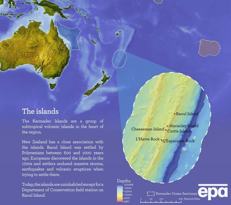 На этой территории будут запрещены все виды рыбалки и глубоководной разведки местности.Островная дуга Кермадек расположена в южной части Тихого океана между Новой Зеландией и государством Тонга .