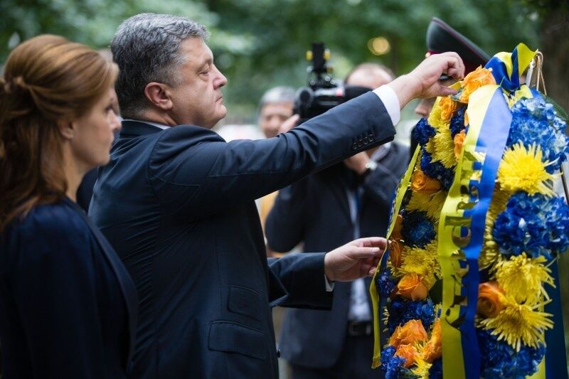 Президент Украины Петр Порошенко, который находится в США в рамках Генеральной Ассамблеи ООН, возложил венок у символического "Дерева выживших".