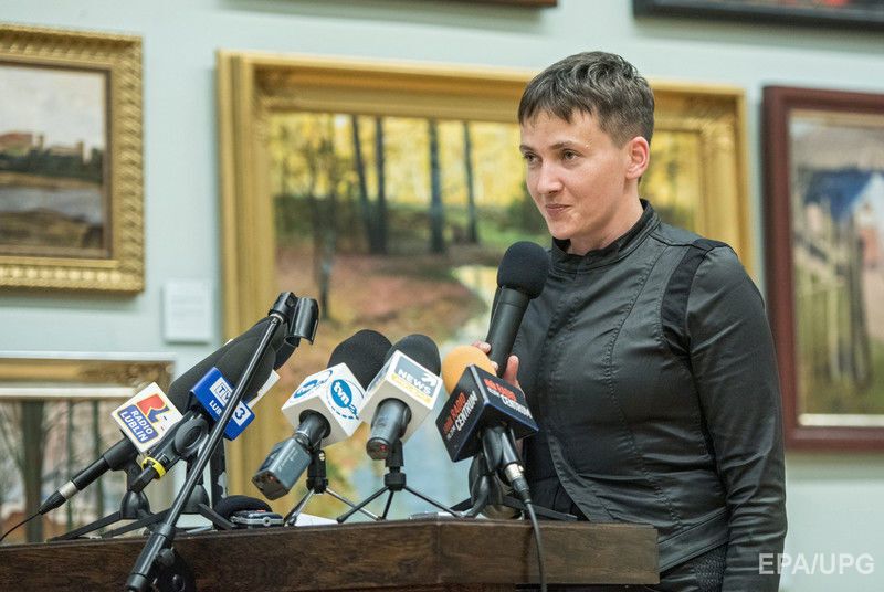 Надежда Савченко воевала на Донбассе в составе батальона "Айдар", попала в плен к боевикам "ЛНР" в июне 2014 года в Луганской области, а затем была вывезена в РФ. В марте 2016 года суд в Ростовской области признал ее виновной в причастности к убийству российских журналистов в Луганской области и приговорил к 22 годам лишения свободы.