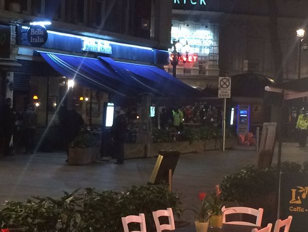 Situation between Leicester Square and Charing Cross Road. Lots of police and people trapped in restaurants. pic.twitter.com/vpsEqc4LKf