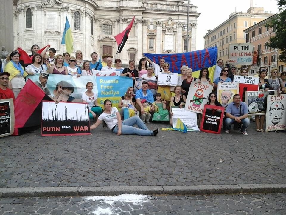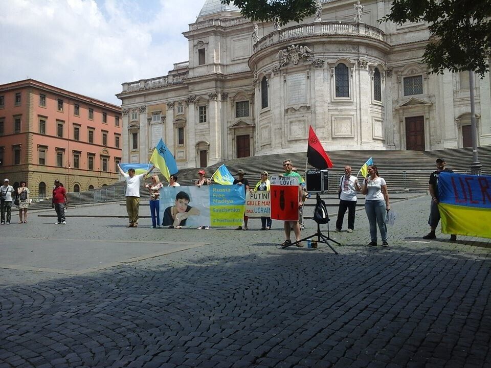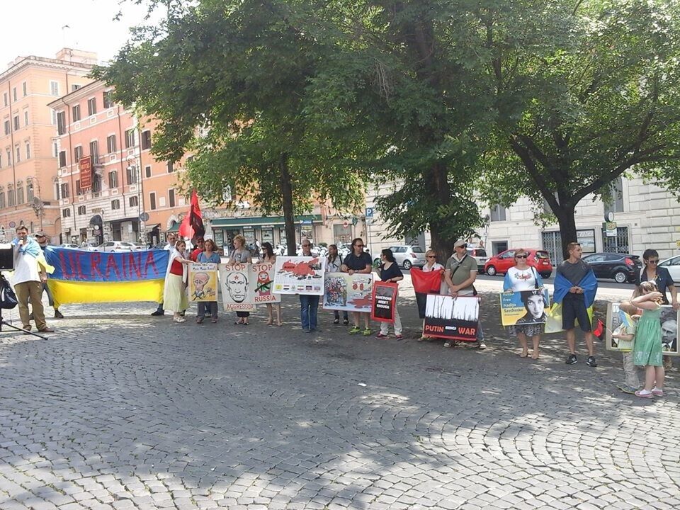 Накануне визита в Италию и Ватикан президента РФ Владимира Путина митингующие обратились к властям Италии и Папе Римскому с просьбой сделать все от них зависящее, чтобы прекратить российскую агрессию в Украине.