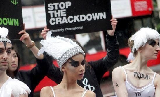 Инициаторы акции из Amnesty International хотят, чтобы в России прекратились притеснения гражданского общества и ЛГБТ.