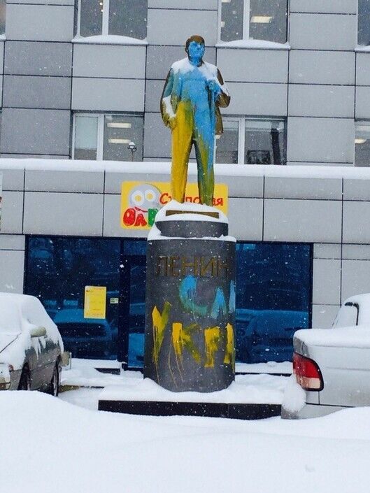 В Новосибирске (РФ) неизвестные разрисовали монумент Славы, памятник Ленину и мемориальную доску в цвета украинского флага. Об этом сообщается в группе "Типичный Новосибирск" в соцсети "Вконтакте". Возле мемориальной доски написали "Азов" и нарисовали символ этого спецполка МВД Украины.