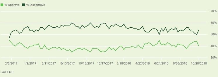 Согласно рейтингу одобрения деятельности президента от 21 октября поддерживали Трампа 44% опрошенных американцев.