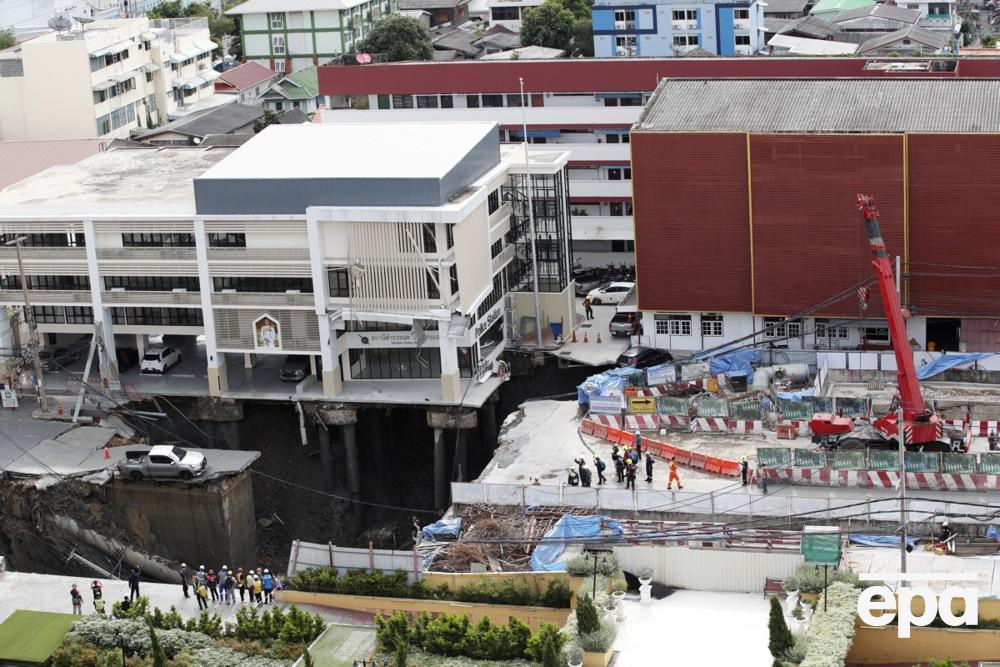 Как объяснил премьер-министр Таиланда Анутин Чарнвиракул, пропасть образовалась в результате проседания грунта во время строительства метро. Губернатор Бангкока Чадчарт Ситтипунт сообщил о прорыве канализационной трубы. Из-за этого остановили водо- и электроснабжение.