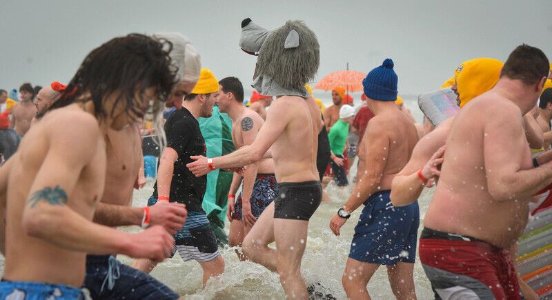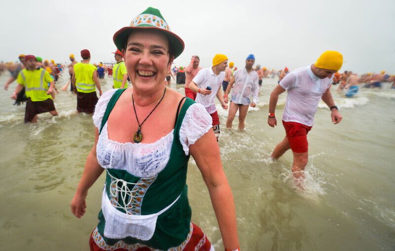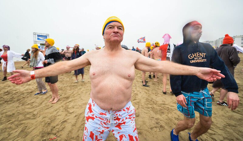 В традиционном новогоднем купании в Северном море приняли участие около пяти тысяч бельгийцев. Фоторепортаж