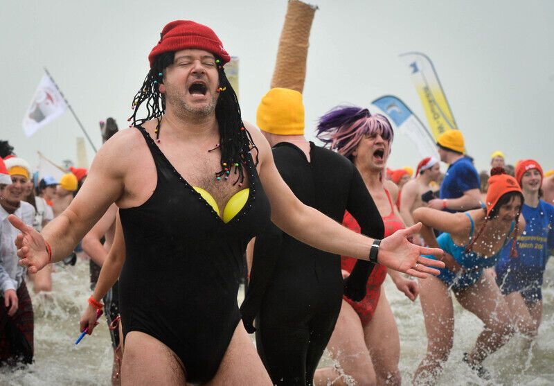 В субботу, 3 января, в бельгийском портовом городе Остенде на Северном море состоялось традиционное новогоднее купание. В празднике приняли участие около пяти тысяч человек.