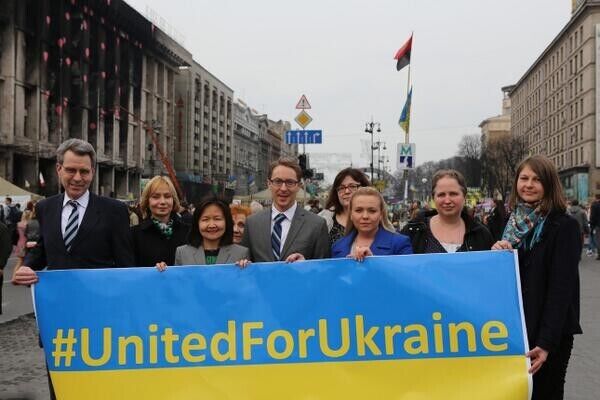 "США и Европа сейчас едины в поддержке Украины в том числе в необходимости экономической помощи и в их усилиях по изоляции России за ее интервенцию в Крыму", – заявил 26 марта в Брюсселе президент США Барак Обама. Это утверждение породило целое движение в Twitter под названием #UnitedForUkraine. С каждой минутой к нему присоединяется все больше людей – от политиков мирового уровня до простых граждан разных стран. За единение ради Украины уже выступили: госсекретарь США Джон Керри, официальный представитель американского Госдепартамента Джен Псаки, посол США в Украине Джеффри Пайетт, министр иностранных дел Швеции Карл Бильдт и другие.