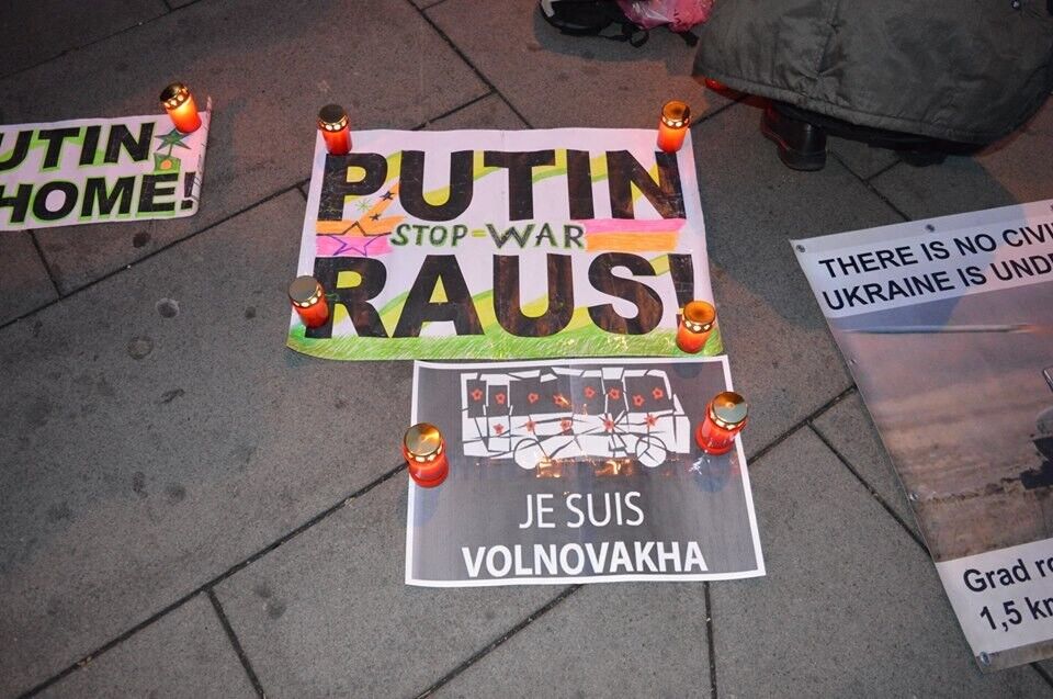Акция памяти погибших в результате теракта под Волновахой прошла в Киеве и других городах Украины, а также в Москве и Париже.