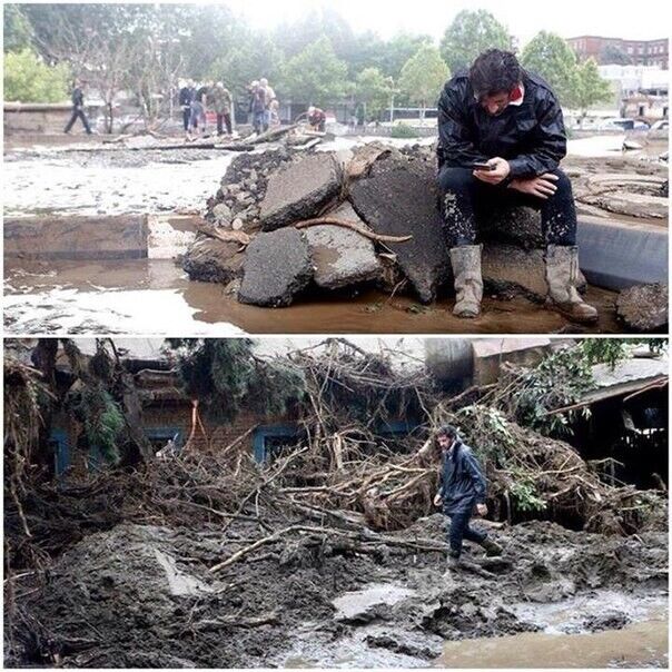 В борьбе с последствиями ужасного наводнения в Грузии активное участие принял знаменитый игрок киевского "Динамо", вице-премьер правительства, министр энергетики и природных ресурсов Грузии Каха Каладзе. Фотографии Каладзе опубликовал спортивный сайт tribuna.com.