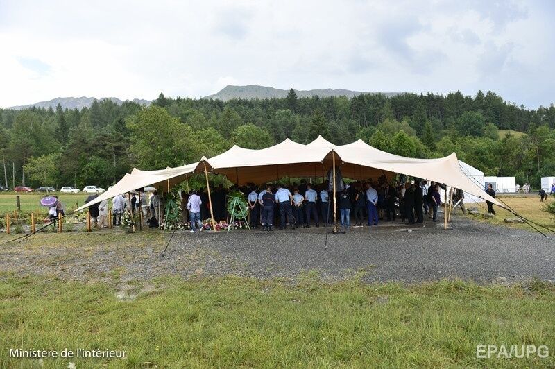 По данным издания, более 300 человек, среди которых родственники и друзья погибших, собрались на кладбище городка Ле-Вернет. Возле мемориала погибшим, расположенного недалеко от места катастрофы, прошла поминальная церемония.