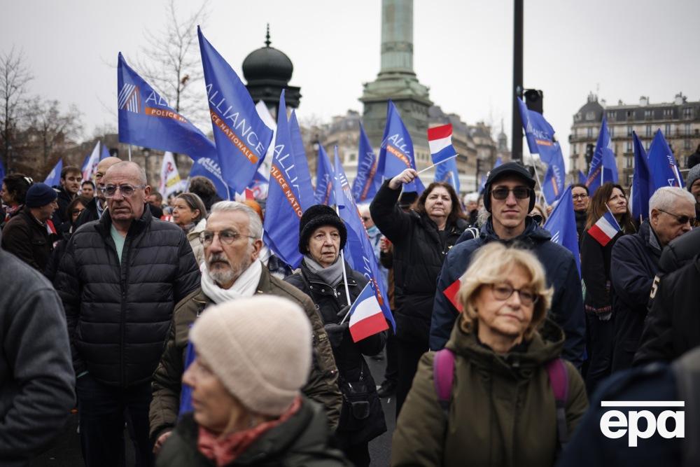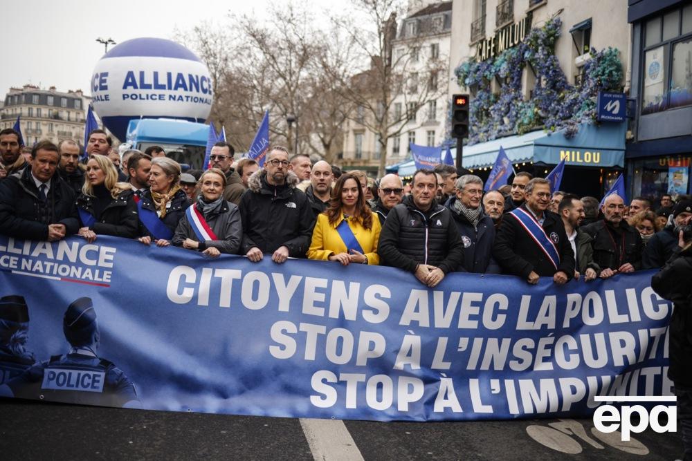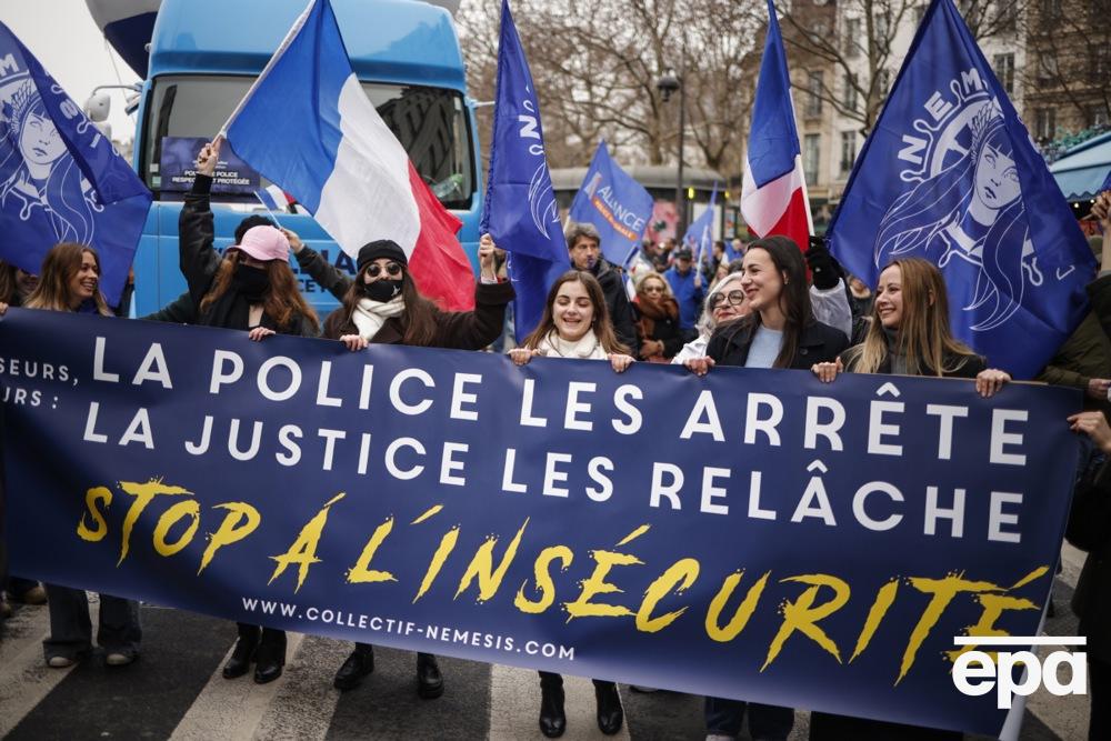 На плакатах – лозунги вроде "Все полицейские – герои" и "Безнаказанность рождает преступников", также звучала "Марсельеза".