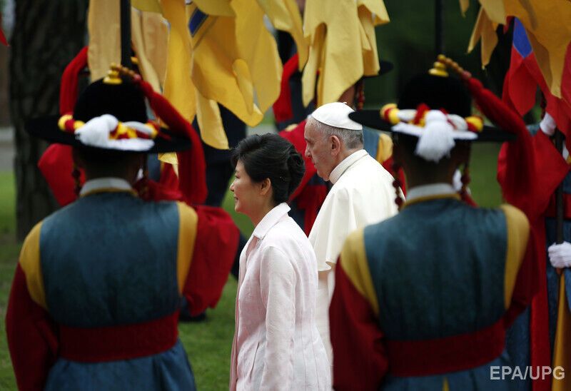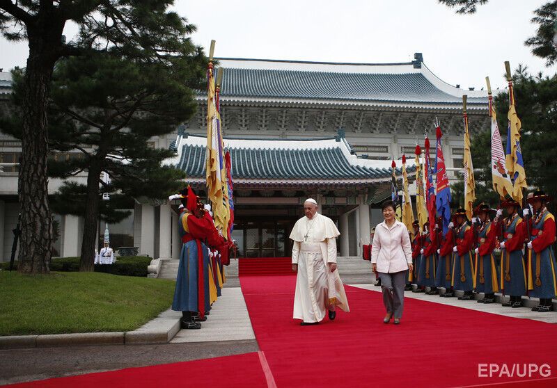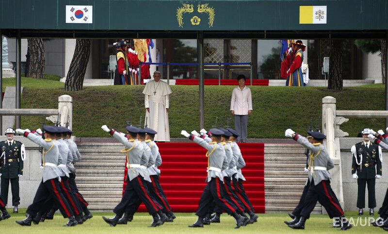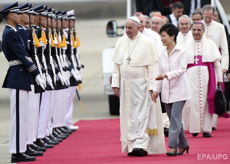В четверг, 14 августа, Папа Римский Франциск прибыл с пятидневным визитом в Южную Корею. Его поездка приурочена к VI Дню азиатской католической молодежи. В международном аэропорту Инчхон Франциска встречала президент страны Пак Кын Хе. Это первый визит Папы Римского в Южную Корею за последние четверть столетия.