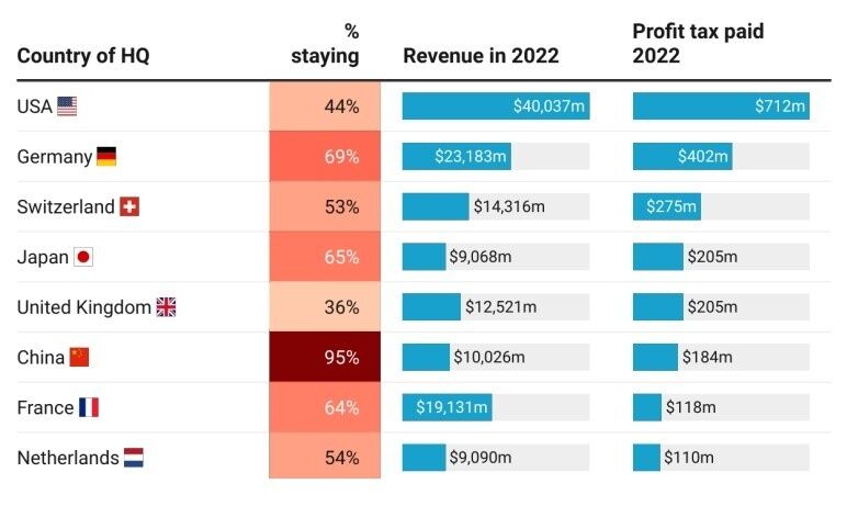 В целом компании со штаб-квартирами в странах – членах ЕС в 2022 году заработали в РФ $75,2 млрд – значительно больше, чем фирмы, зарегистрированные в США (чуть более $40 млрд). А общая сумма их налогов в бюджет РФ составила $594 млн.
