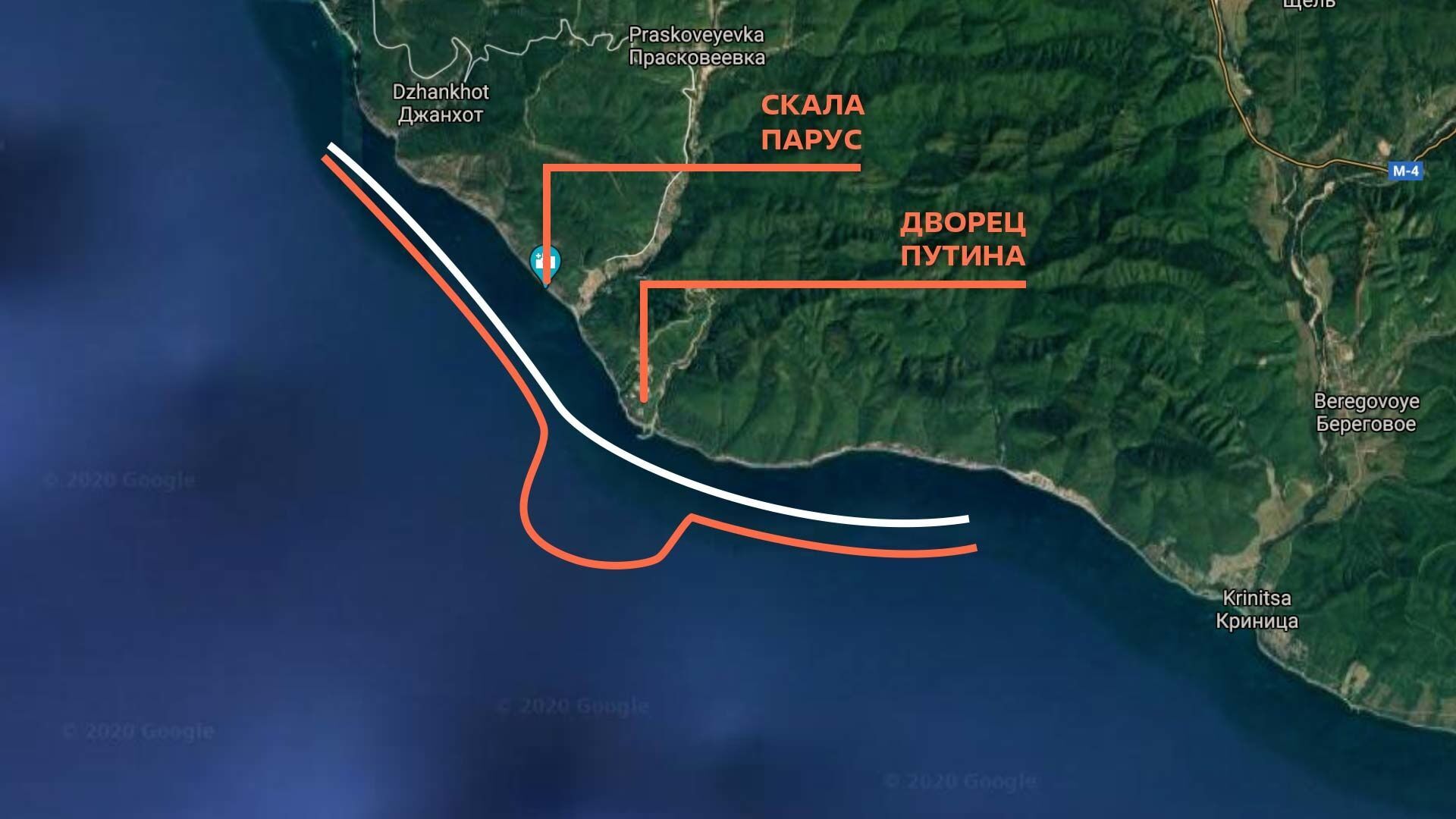 Фонд борьбы с коррупцией (ФБК) Навального 19 января опубликовал расследование "Дворец для Путина. История самой большой взятки" о резиденции президента РФ в Краснодарском крае. В расследовании сказано, что это самый охраняемый и самый секретный объект в РФ. Он имеет размеры 39 княжеств Монако и построен так, чтобы к нему нельзя было подобраться ни по земле, ни по морю, ни по воздуху. В расследовании утверждалось, что местное ФСБ "настоятельно просит" обходить мыс Идокопас за милю. "Свое требование они ничем не объясняют, просто отправляют всех рыбаков в обход в открытое море задва километра от берега", – говорится в материале.