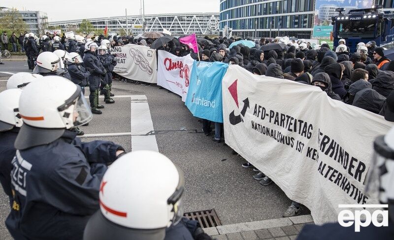 Комментируя съезд националистической партии "Альтернатива для Германии" в Штутгарте, Топаллер обратил внимание на массовые протесты левых, сопровождавшиеся драками с полицией.