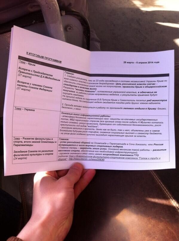 Относительно Крыма авторы инструкции делают ударение на том, что при украинской власти Крым в основном деградировал, а цель российской власти сейчас – разгрести "авгиевы конюшни" и привести уровень жизни в Крыму к общероссийским стандартам.