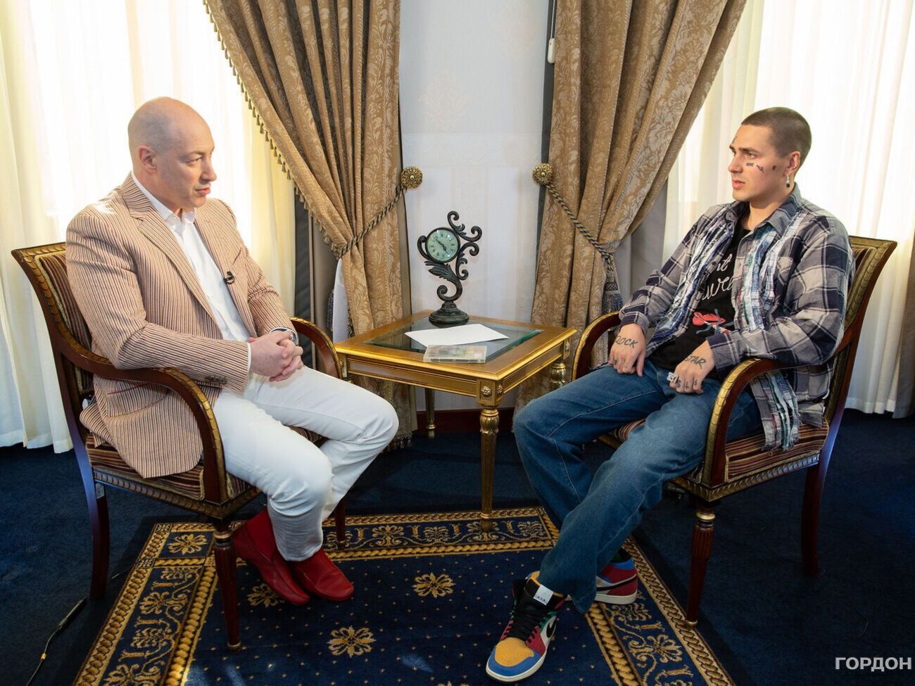 ","Title":"Война в Украине, отъезд из России, стыдно быть русским, Morgenshtern, украинка Марьяна Ро. Интервью Гордона с рэпером Face. Трансляция","Url":"https://gordonua.com/live/vojna-v-ukraine-otezd-iz-rossii-stydno-byt-russkim-morgenshtern-ukrainka-marjana-ro-intervju-hordona-s-reperom-face-transljatsija-1604188.html","CanonicalUrl":"https://gordonua.com/live/vojna-v-ukraine-otezd-iz-rossii-stydno-byt-russkim-morgenshtern-ukrainka-marjana-ro-intervju-hordona-s-reperom-face-transljatsija-1604188.html","AmpUrl":"https://gordonua.com/amp/live/vojna-v-ukraine-otezd-iz-rossii-stydno-byt-russkim-morgenshtern-ukrainka-marjana-ro-intervju-hordona-s-reperom-face-transljatsija-1604188.html","ReadTimeInMinutes":0,"IsPublished":true,"PublishDate":"2022-04-11T15:00:00Z","FullTextWordCount":0,"ContextText":null,"SourceUrl":null,"SourceTitle":null,"JobTitle":null,"SearchTitle":null,"ID":0,"VotesCount":0,"Localizations":{},"Body":""}},{"ID":343179,"CreateUser":null,"ModifiedDate":"2024-11-25T00:32:03Z","FacebookCommentCount":0,"FacebookCommentUrl":"","FacebookShareCount":0,"SourceUrl":null,"LinkedEntities":{"News":[],"Section":[],"Tag":[],"Person":[],"Product":[],"LandingPage":[]},"MainImage":{"Formats":[{"ImageUrl":"https://i.gordonua.com/news/2021/6/16/1552342.jpg","ImageFormat":"format_4x3"},{"ImageUrl":"https://i.gordonua.com/news/2021/6/16/1552342.jpg","ImageFormat":"format_3x2"},{"ImageUrl":"https://i.gordonua.com/news/2021/6/16/1552342.jpg","ImageFormat":"format_16x10"},{"ImageUrl":"https://i.gordonua.com/news/2021/6/16/1552342.jpg","ImageFormat":"format_16x9"},{"ImageUrl":"https://i.gordonua.com/news/2021/6/16/1552342.jpg","ImageFormat":"format_3x4"}],"Localizations":{"ru":{"Alt":"Face: Мне хочется не просто делать свое любимое дело, а чтобы люди могли свои сердца с моим положить рядом и согреть друг друга","Description":"Face: Мне хочется не просто делать свое любимое дело, а чтобы люди могли свои сердца с моим положить рядом и согреть друг друга","Source":"Фото: Ростислав Гордон / Gordonua.com"}},"Localization":{"Alt":"Face: Мне хочется не просто делать свое любимое дело, а чтобы люди могли свои сердца с моим положить рядом и согреть друг друга","Description":"Face: Мне хочется не просто делать свое любимое дело, а чтобы люди могли свои сердца с моим положить рядом и согреть друг друга","Source":"Фото: Ростислав Гордон / Gordonua.com"}},"GalleryImages":[],"Flags":[{"ID":6,"Title":"Ексклюзив G","CodeName":"exclusive"},{"ID":9,"Title":"Жирним","CodeName":"main"}],"Tags":[],"Topics":[],"Type":"OldNews","ViewCount":52207,"Section":{"ID":3,"CodeName":"interview","Parent":null,"IsFullTextVisible":false,"IsGridView":true,"Localizations":{"ru":{"IsCustomSeoDescription":false,"IsCustomSeoH1":false,"IsCustomSeoTitle":false,"IsCanonical":false,"SeoDescription":null,"SeoTitle":null,"SeoH1":null,"MicroData":"","MicroDataParsed":null,"Title":"В гостях у Гордона","Url":"https://gordonua.com/interview.html","FullText":"","Description":null,"JobTitle":null,"SearchTitle":null,"ID":0,"VotesCount":0,"Localizations":{},"IsCustomTitleForSocialNetworks":false,"TitleForSocialNetworks":null,"UpdateDate":null,"IsUpdated":null,"CanonicalUrl":"","AmpUrl":"","ReadTimeInMinutes":0,"IsPublished":false,"PublishDate":"","ContextText":null,"SourceUrl":null,"SourceTitle":null,"Body":""}},"Localization":{"IsCustomSeoDescription":false,"IsCustomSeoH1":false,"IsCustomSeoTitle":false,"IsCanonical":false,"SeoDescription":null,"SeoTitle":null,"SeoH1":null,"MicroData":"","MicroDataParsed":null,"Title":"В гостях у Гордона","Url":"https://gordonua.com/interview.html","FullText":"","Description":null,"JobTitle":null,"SearchTitle":null,"ID":0,"VotesCount":0,"Localizations":{},"IsCustomTitleForSocialNetworks":false,"TitleForSocialNetworks":null,"UpdateDate":null,"IsUpdated":null,"CanonicalUrl":"","AmpUrl":"","ReadTimeInMinutes":0,"IsPublished":false,"PublishDate":"","ContextText":null,"SourceUrl":null,"SourceTitle":null,"Body":""}},"RelatedNews":[],"VideoID":null,"ShortID":0,"Poll":null,"Authors":[{"ID":265,"IsPublished":true,"IsAuthor":true,"IsBlogger":true,"IsHero":false,"IsBulvar":false,"IsFullTextVisible":true,"ImageUrl":"https://i.gordonua.com/person/2026/4/6/dmitro-gordon-1.jpg","BloggerImageUrl":"https://i.gordonua.com/person/2022/4/22/g.png","Phone":null,"Email":"[email protected]","Twitter":"https://x.com/dmitry_gordon","LinkedIn":null,"Facebook":null,"Instagram":"https://www.instagram.com/gordondmytro/","Youtube":"https://www.youtube.com/@DmytriyGordon","Tiktok":"https://www.tiktok.com/@gordondmytro","Localizations":{"ru":{"IsCustomSeoDescription":false,"IsCustomSeoH1":false,"IsCustomSeoTitle":false,"IsCanonical":false,"SeoDescription":null,"SeoTitle":null,"SeoH1":null,"MicroData":"","MicroDataParsed":null,"Title":"Дмитрий ГОРДОН","Description":null,"FullText":"Родился 21 октября 1967 года в Киеве. Окончил Киевский инженерно-строительный институт.