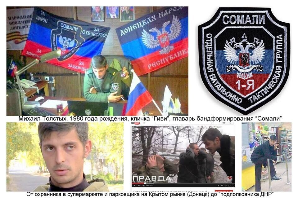 Министерство внутренних дел установило личности 30 боевиков – участников банды "Сомали". Об этом в Facebook сообщил начальник ГУ МВД Украины в Донецкой области Вячеслав Аброськин. "На территории оккупированной боевиками части Донецкой области орудуют бандиты "Сомали" под предводительством Михаила Толстых, 1980 года рождения, жителя Иловайска, по кличке Гиви. "Деятель ополчения", прошедший путь от парковщика до "полковника ДНР", Гиви известен своими показательными допросами пленных украинских военных", – написал Аброськин.