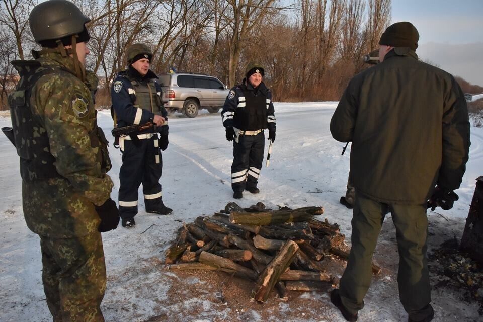 Аброськин показал, как полицейские встречают Новый год на пункте пропуска в Марьинке. Фоторепортаж