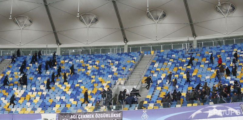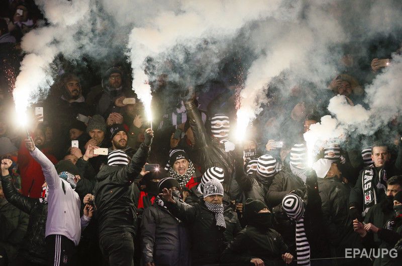 Во время матча на НСК "Олимпийский" в Киеве между местным "Динамо" и стамбульским "Бешикташем" произошла потасовка между украинскими правоохранителями и турецкими болельщиками. Как сообщал комментатор встречи на телеканалах "Украина" и "Футбол 1" во время трансляции, фанаты использовали пиротехнику на стадионе, иногда петарды попадали в журналистский сектор. Перед матчем в Киеве неоднократно проходили столкновения болельщиков турецкой и киевской команд.