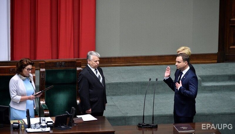 В четверг, 6 августа, Анджей Дуда принял присягу на посту президента Польши. Торжественная церемония инаугурации состоялась в зале пленарных заседаний сейма. Во время произнесения текста присяги справа от Дуды стояла его супруга Агата – новая первая леди Польши. В обращении к нации Дуда поблагодарил поляков за выбор. "Я хочу сказать, что я буду делать все, чтобы не разочаровать ожидания", – сказал он. На церемонии присутствовали польские политики, силовики, представители духовенства, иностранные дипломаты, а также три экс-президенты страны – Лех Валенса, Александр Квасьневский и Бронислав Коморовский.