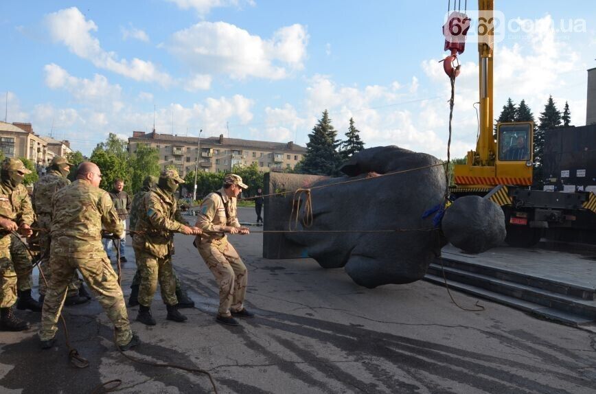 За последний год в Украине активисты снесли более ста памятников Ленину. 17 мая памятник Ленину свалили в селе Каменское, 21 мая истукан пал в райцентре Гуляйполе Запорожской области, а 23 мая памятник Ленину демонтировали в городе Курахово Донецкой области.
