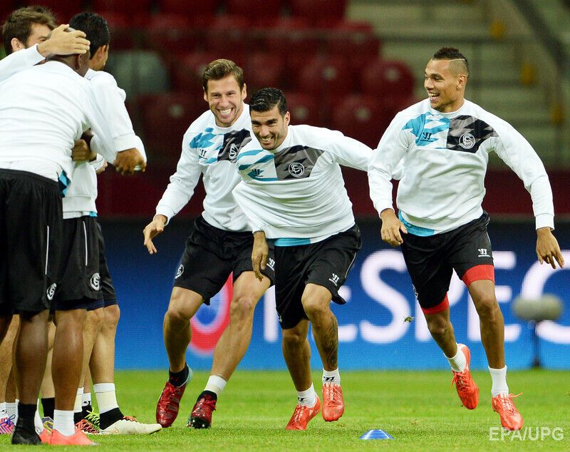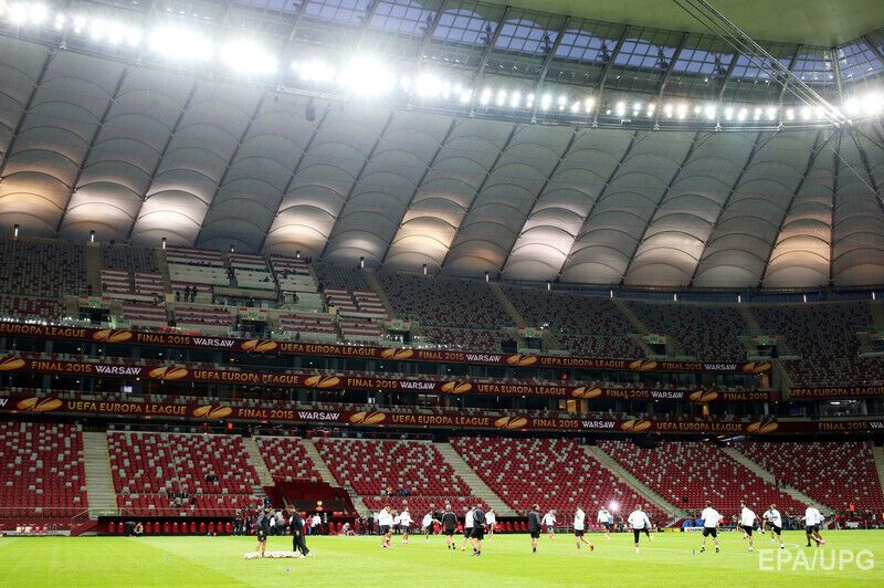 "Днепр" и "Севилья" опробовали газон варшавского стадиона. Фоторепортаж