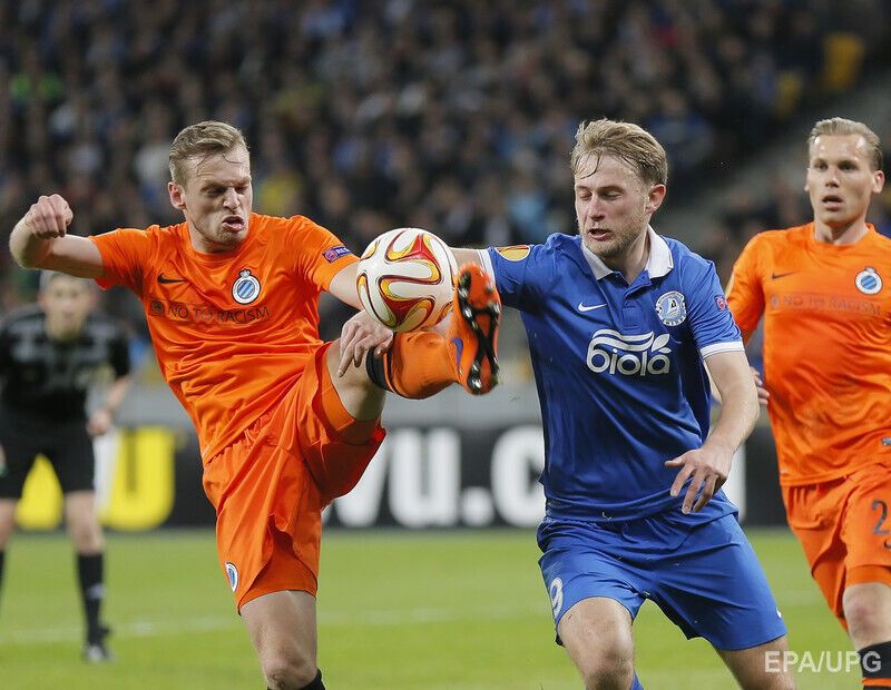 Днепропетровский "Днепр" в ответном матче четвертьфинала Лиги Европы против бельгийского "Брюгге" одержал победу со счетом 1:0 (первый матч закончился нулевой ничьей). На 82-й минуте поединка, который проходил на НСК "Олимпийский" в Киеве, отметился Евгений Шахов. Таким образом, "Днепр" впервые выходит в полуфинал Лиги Европы. Соперник "Днепра" станет известен в пятницу во время жеребьевки в штаб-квартире УЕФА.