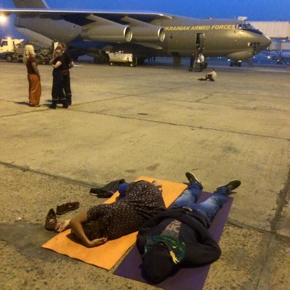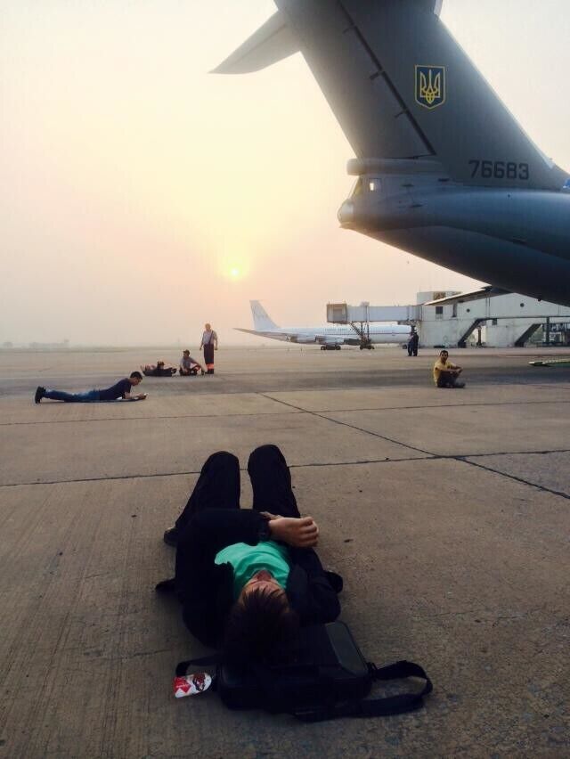 Утром в среду, 6 мая, самолет с эвакуированными из Непала украинцами и иностранцами приземлился в аэропорту Баку. Перед этим воздушное судно делало техническую остановку в Дели, где у него лопнуло колесо. Во время остановки пассажиры самолета находились в аэропорту, где отдыхали прямо на бетонной полосе. Среди тех, кто спал на земле, и.о. главы Государственной службы Украины по чрезвычайным ситуациям Зорян Шкиряк. По прилету в Баку, как сообщила в Facebook журналист Оксана Котова, их поселили в отеле. Ожидается, что самолет вылетит в Киев в 23.00.