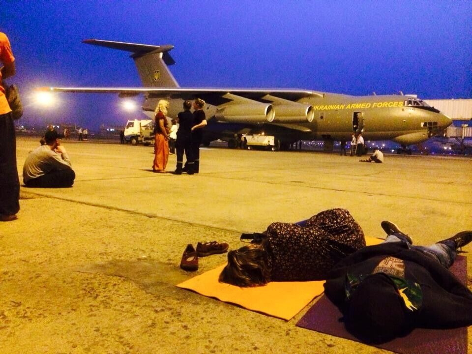 Только вечером 5 мая воздушное судно, на борту которого находится около 100 человек, включая иностранцев, журналистов, дипломатов и спасателей, вылетело из Катманду в Киев.