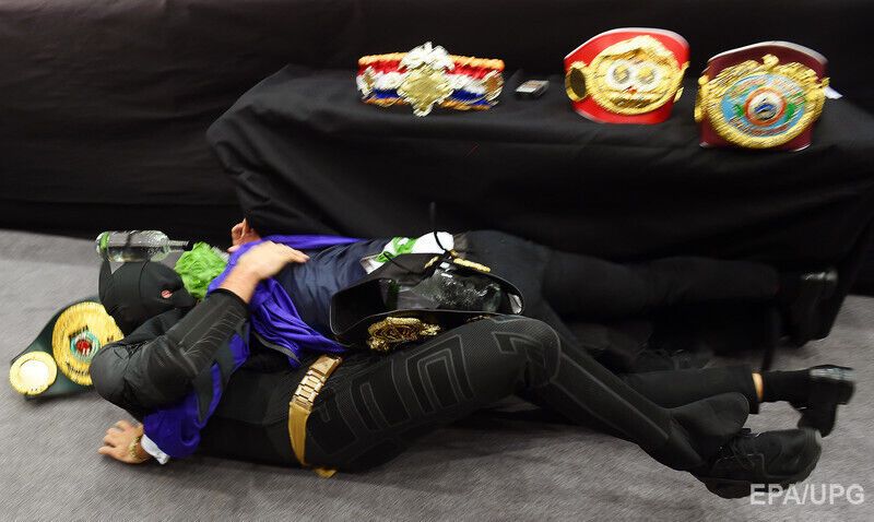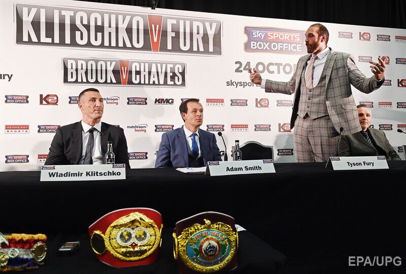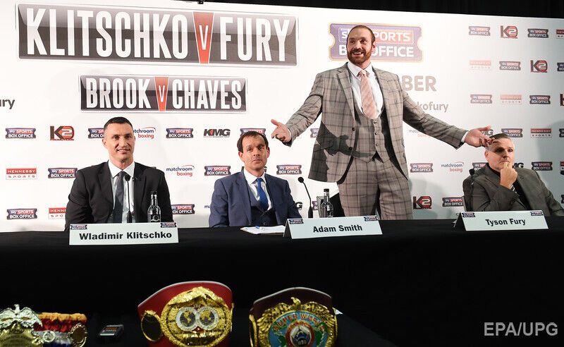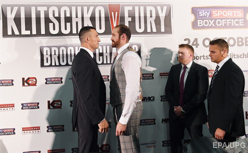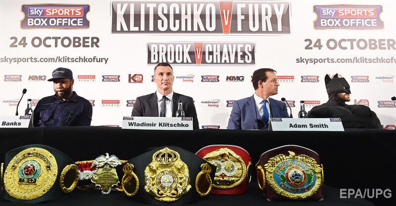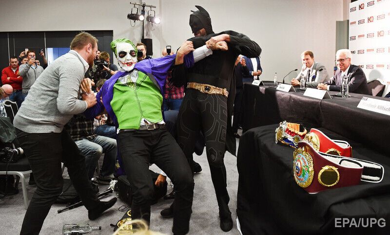 23 сентября в столице Великобритании состоялась совместная пресс-конференция чемпиона мира в супертяжелом весе Владимира Кличко с британцем Тайсоном Фьюри, который 24 октября в немецком Дюссельдорфе намерен оспорить чемпионский титул украинца. 26-летний британец явился на мероприятие в костюме супергероя из американского экранизированного комикса Batman. На официальной странице братьев Кличко в Facebook выходку британца назвали "сюрпризом". "Surprise on press conference. Klitschko vs Batman. Lol", – говорится в сообщении "братства". Накануне Фьюри пообещал бросить бокс, если не сможет отобрать у Кличко титул чемпиона мира. Украинец считает, что Фьюри знает, что говорит. "Он выйдет на ринг не для того, чтобы отбывать номер. Он придет за победой в чемпионском поединке", – сказал украинец.