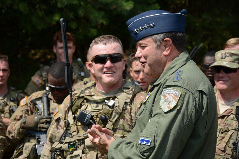 23 июля главнокомандующий силами НАТО в Европе генерал Филип Бридлав посетил Международный центр миротворчества и безопасности Академии Сухопутных войск, где продолжаются масштабные украинско-американские учения Rapid Trident-2015, сообщает Минобороны. По данным ведомства, вместе с командующим Сухопутными войсками ВС Украины генерал-лейтенантом Анатолием Пушняковым они проинспектировали учебные участки полигона, где проходят подготовку участники учений из разных стран. "Бридлав поблагодарил руководство учений за достойную организацию мероприятия и заверил, что Североатлантический альянс и дальше намерен тесно сотрудничать с Украиной с целью повышения обороноспособности страны и поддержания мира и безопасности в Восточноевропейском регионе.