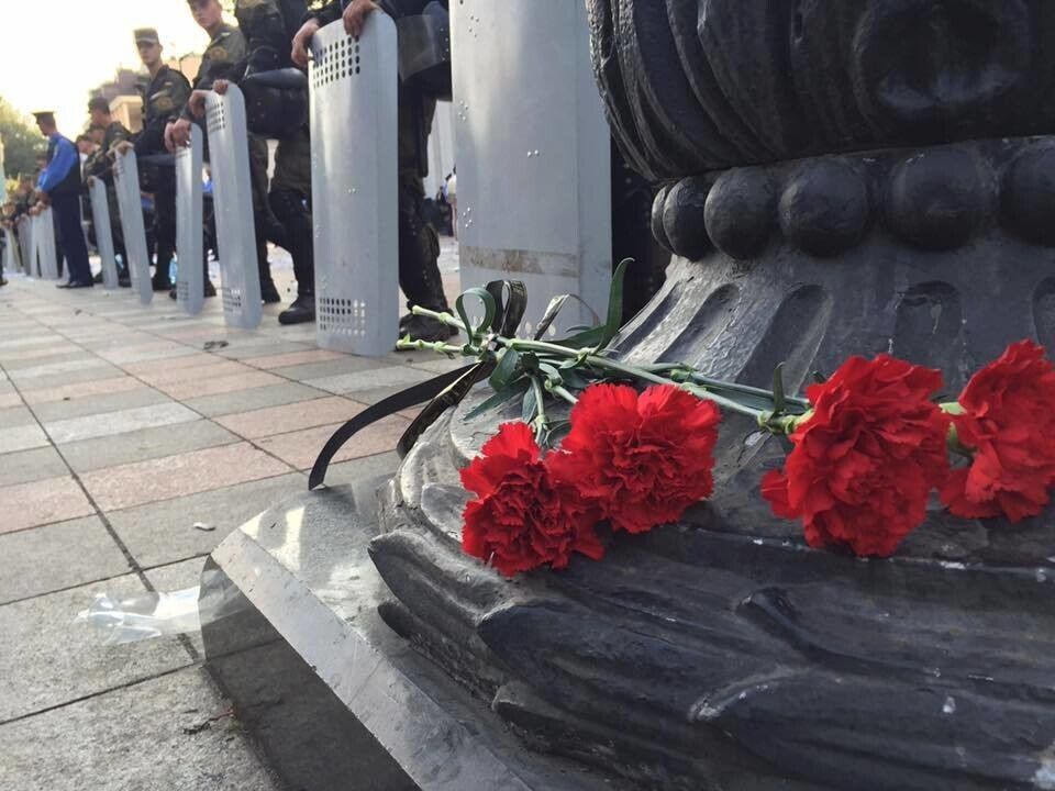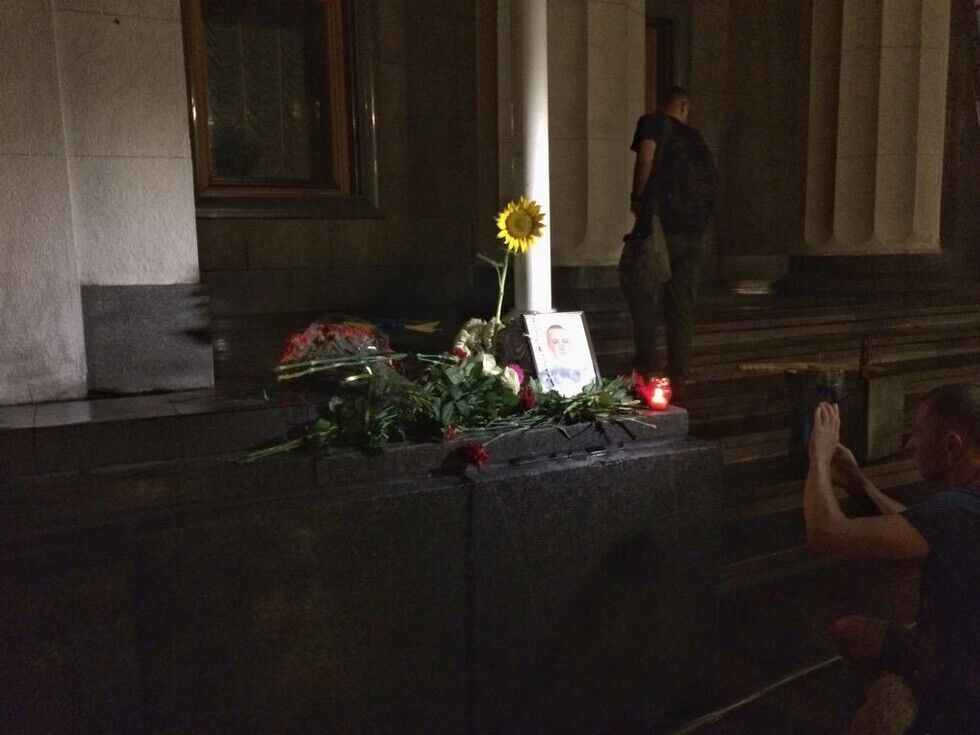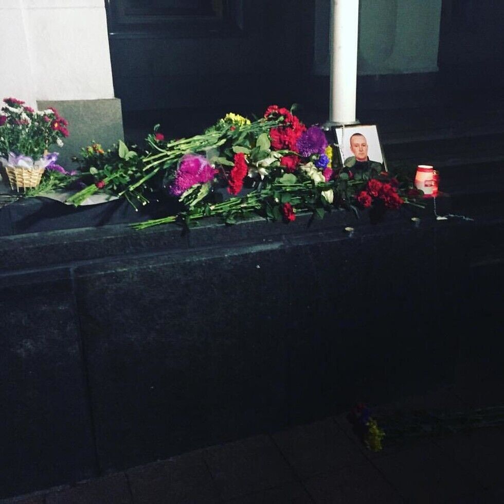 К месту гибели нацгвардейца под Радой киевляне несут цветы. Фоторепортаж