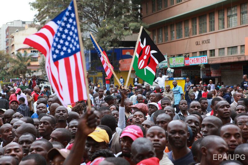 Кенийцы встретили Обаму его портретами и флагами США. Фоторепортаж