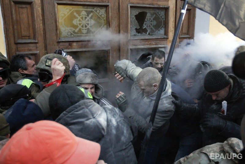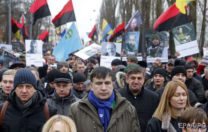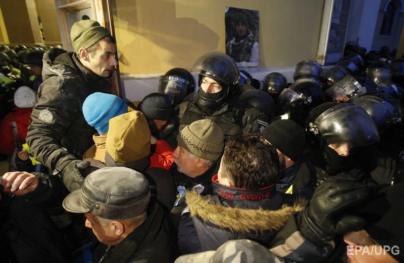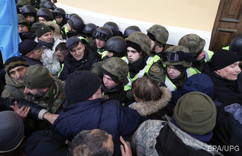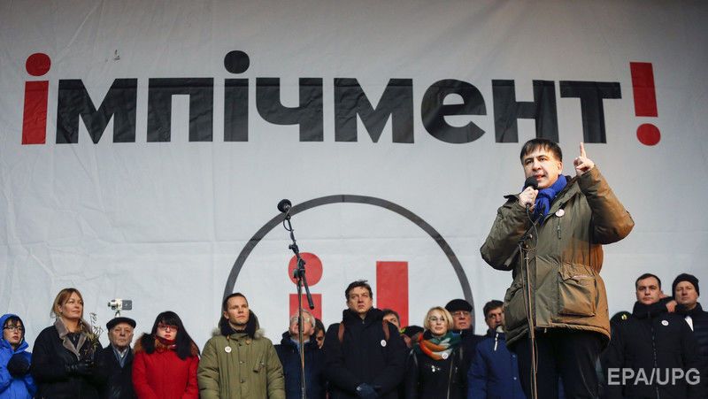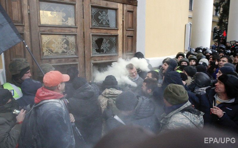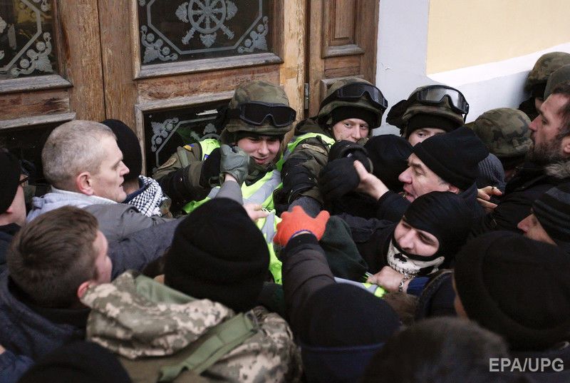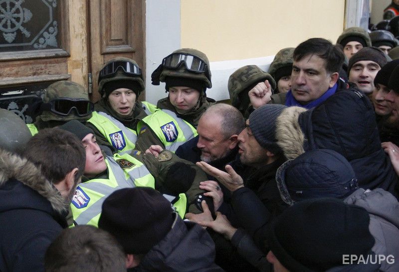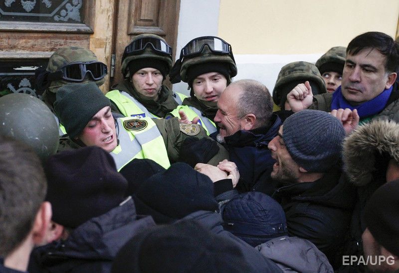 В воскресенье, 17 декабря, в центре Киева состоялся очередной марш "За импичмент" во главе с лидером партии "Рух нових сил" Михаилом Саакашвили, сообщает корреспондент издания "ГОРДОН". Во время митинга на Майдане Незалежности политик заявил о намерении организовать штаб в Октябрьском дворце. Протестующие пришли к зданию дворца, но вход перекрыли сотрудники Нацгвардии. Между активистами и силовиками произошли столкновения, кто-то распылил неизвестный газ. По предварительным данным, пострадало 10 правоохранителей и около 20 митингующих.