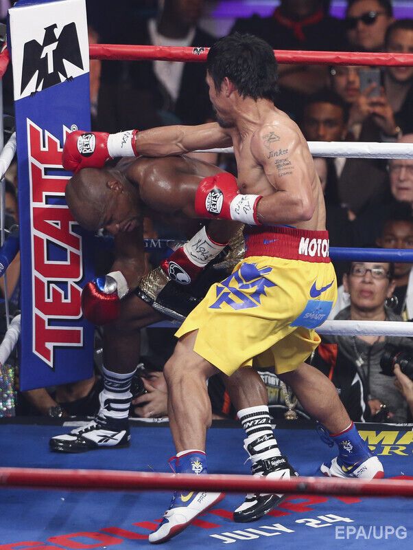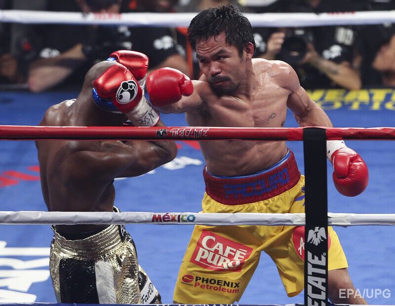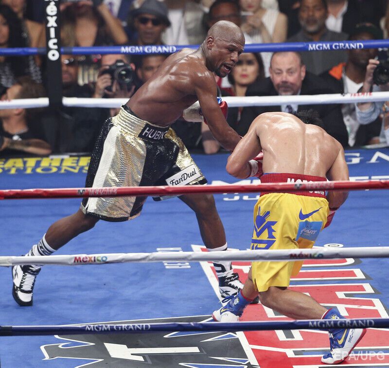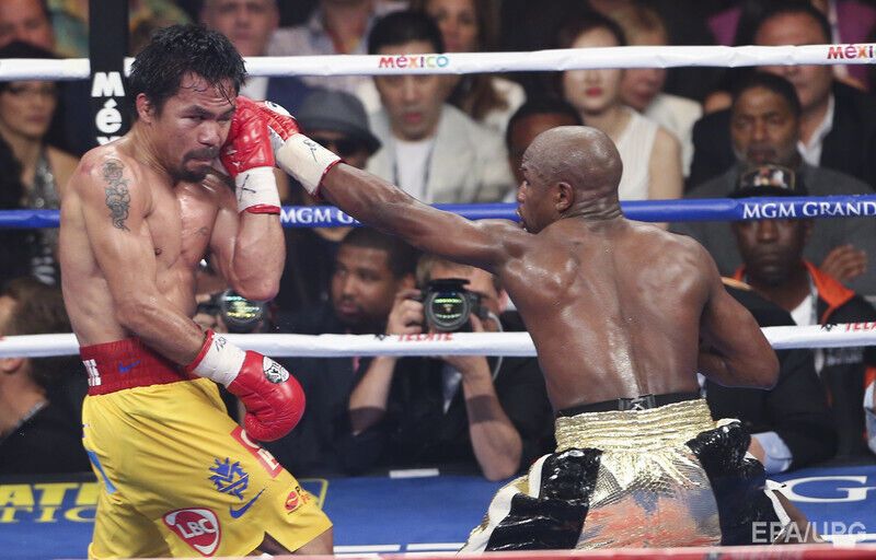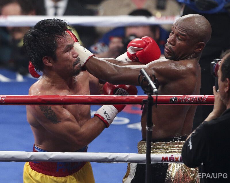 В ночь на воскресенье, 3 мая, в Лас-Вегасе американец Флойд Мейвезер победил боксера из Филиппин Мэнни Пакьяо. По итогам 12-раундового поединка судьи отдали предпочтение американцу – 119:110, 116:112, 116:112. Для обоих боксеров поединок стал первым в 2015 году. В андеркарте боя украинец Василий Ломаченко отстоял титул чемпиона мира по версии WBO в полулегком весе.