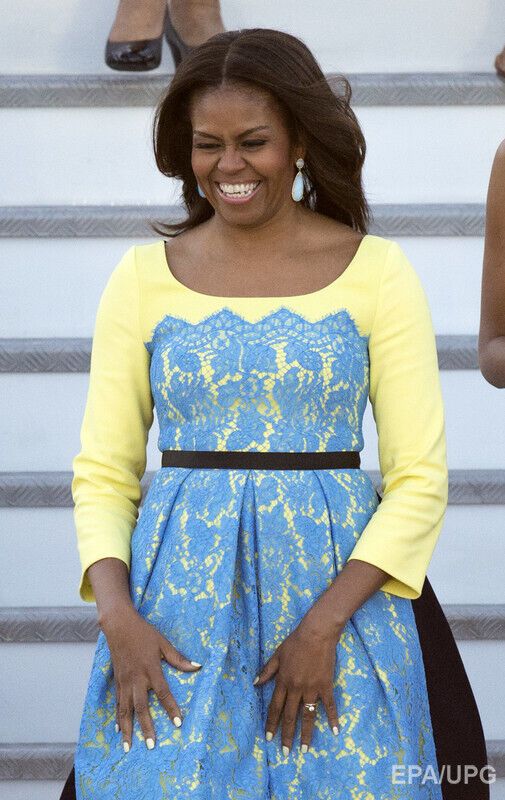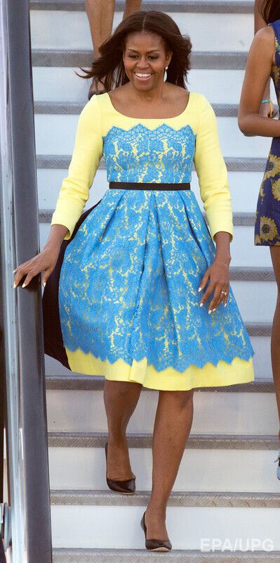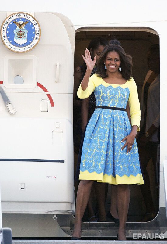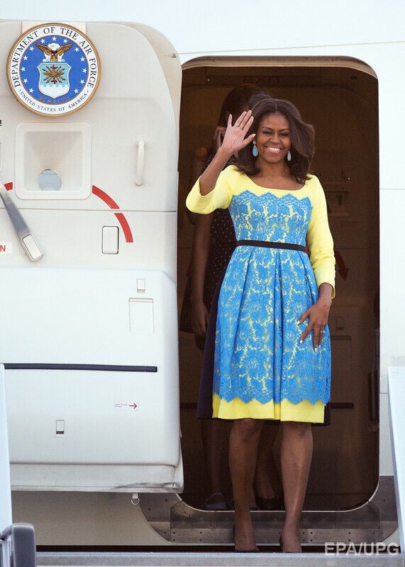Мишель Обама прилетела в Лондон в платье цветов украинского флага. Фоторепортаж