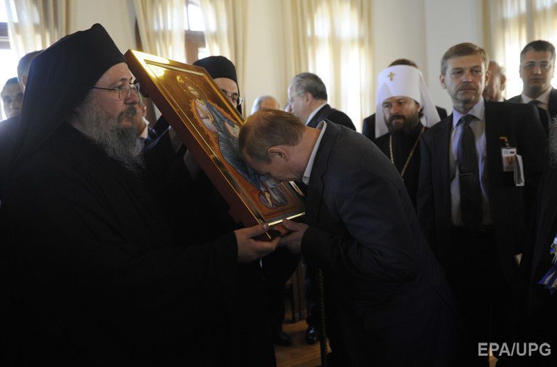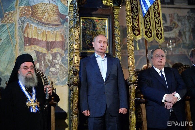 Агентство EPA опубликовало фотографии президента России Владимира Путина в ходе его визита на Афон в Греции, где, по сообщениям СМИ, его посадили в кресло византийских императоров. Также в ходе визита глава РФ присутствовал на молебне, во время которого вознесли молитву "о здравии, жизни и милости раба Божия Владимира с семейством и окружающими". На фотографиях российский президент выглядит усталым и постаревшим. Чтобы оценить изменения, произошедшие с ним за два месяца, в конце фоторепортажа прилагается фотография Путина из аннексированного Крыма, сделанная 18 марта 2016 года.