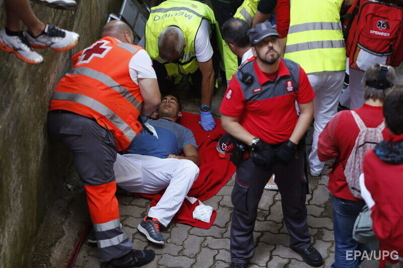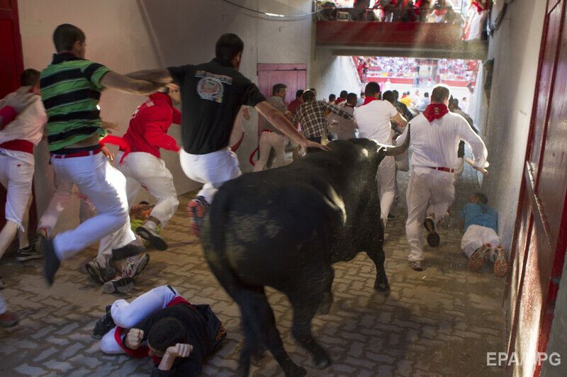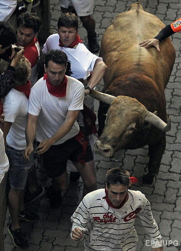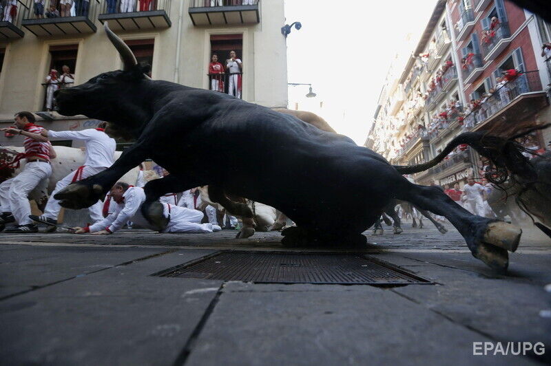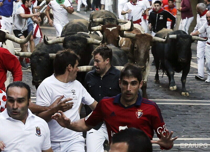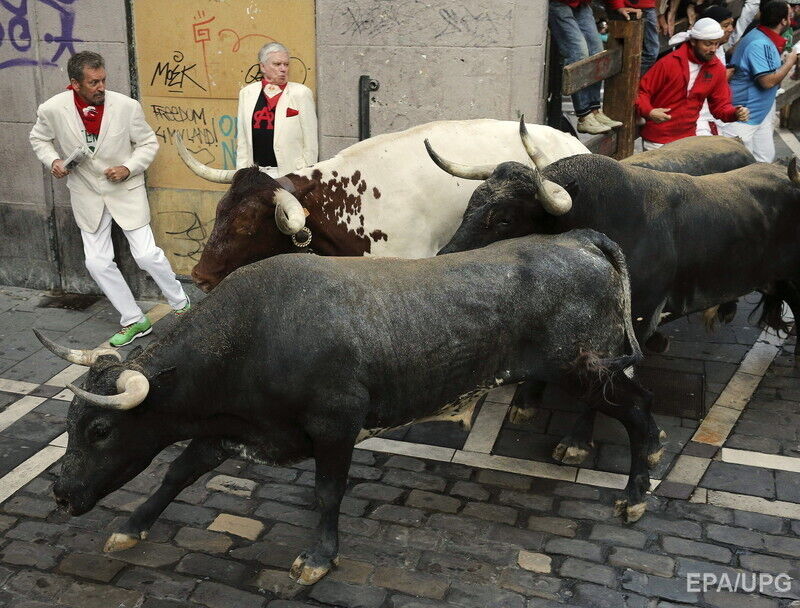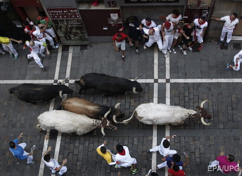 В последний день фестиваля "Сан-Фермин" в испанской Памплоне во вторник, 14 июля, в результате забега с быками по улицам города пострадали по меньшей мере шесть человек, сообщает Euronews. Пострадавших с травмами и ушибами доставили в больницы. При этом сообщается, что никто не получил колотых ран рогами быка. Забег с быками по улицам города длился чуть более двух минут. В действе приняли участие несколько сотен смельчаков.