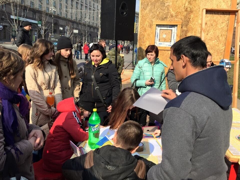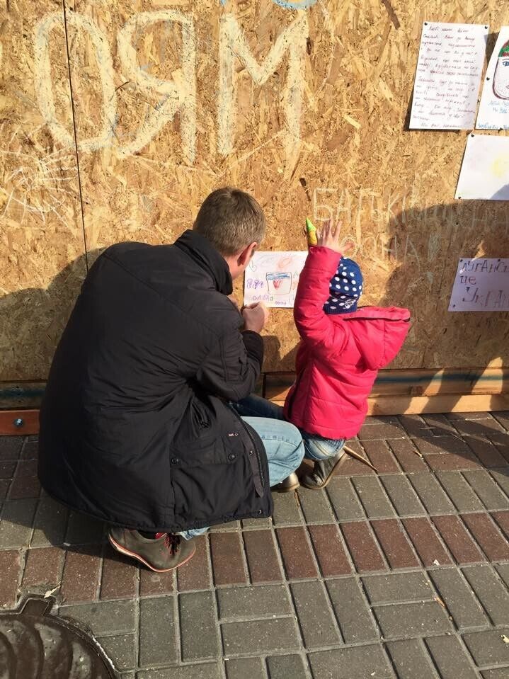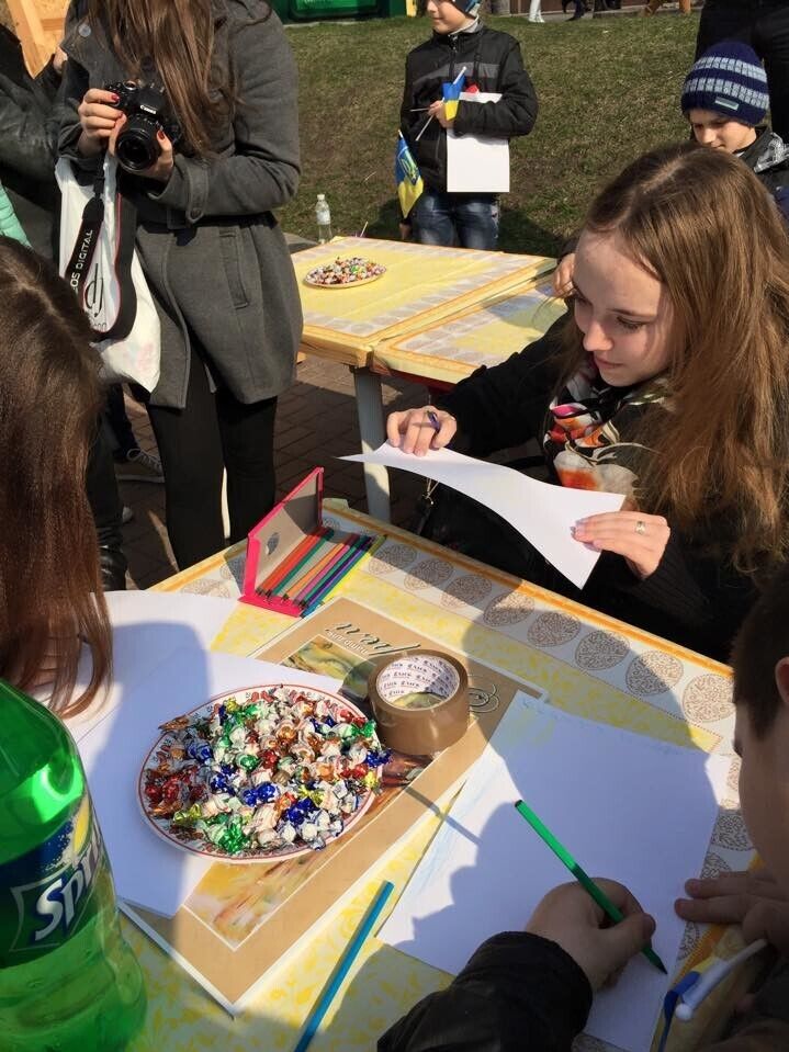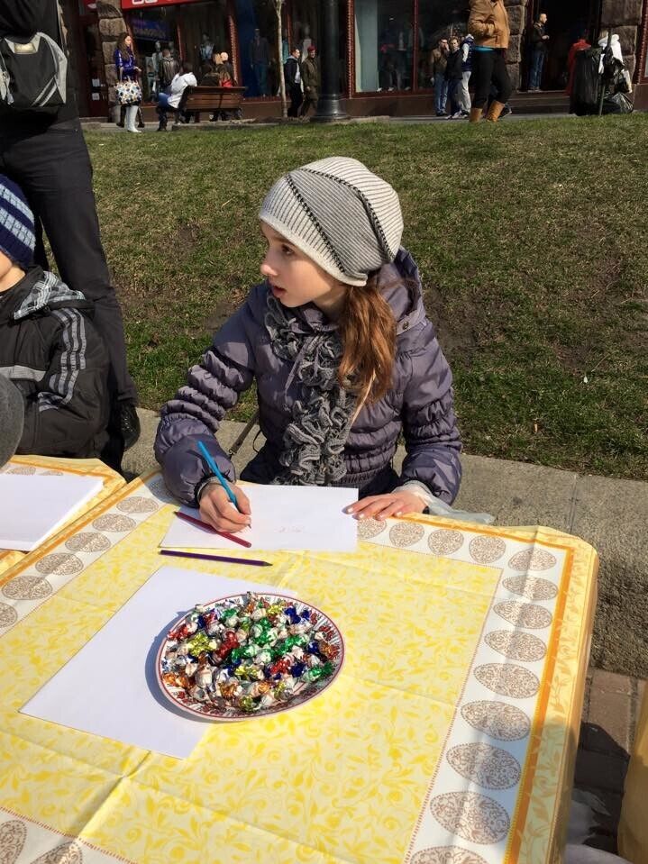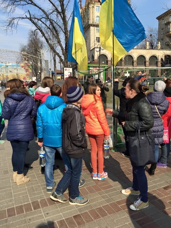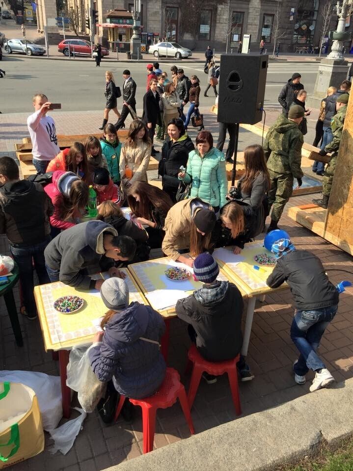 Сотни людей собрались в Киеве на Крещатике, чтобы принять участие в акции "Подари тепло героям". Дети из Донецкой и Луганской областей, а также жители столицы принесли подарки для украинских бойцов и нарисовали для них рисунки. Об этом на своей странице в Facebook сообщил комбат "Киев-1", народный депутат Евгений Дейдей.