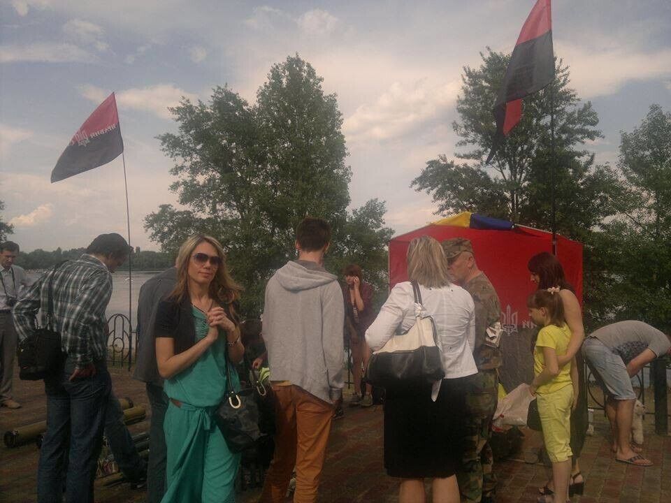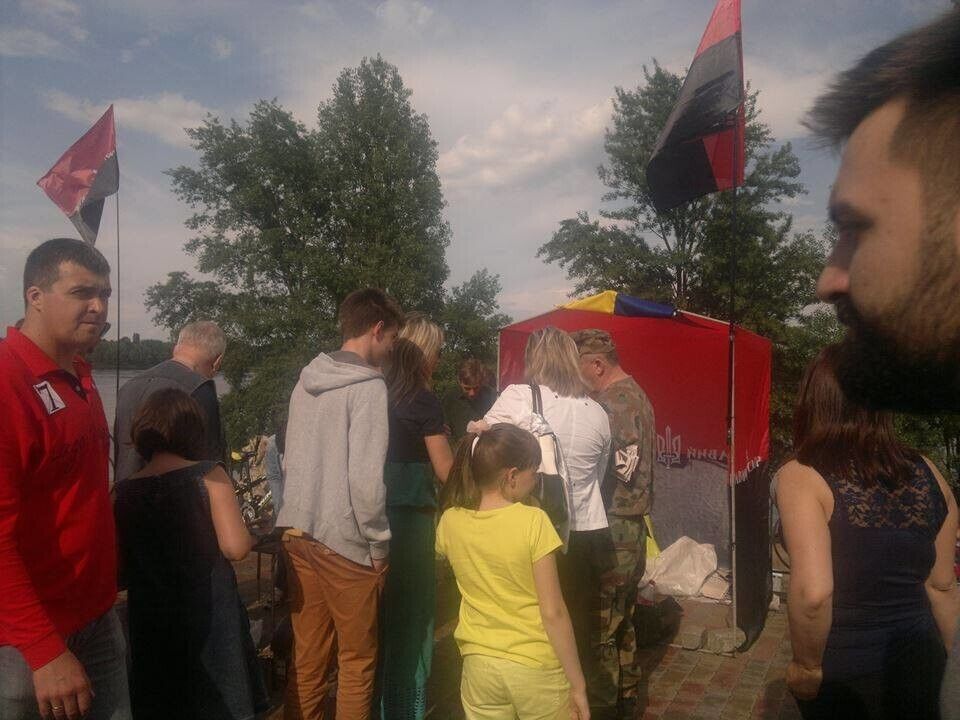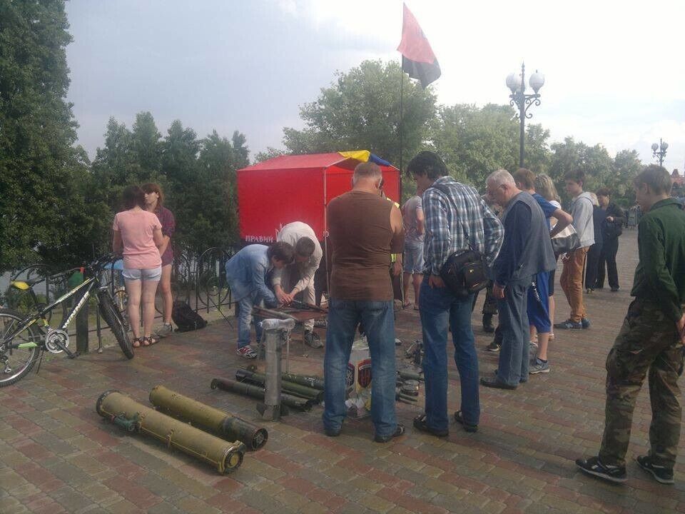 На Оболонской набережной в Киеве "Правый сектор" устроил выставку оружия из зоны АТО. Фоторепортаж