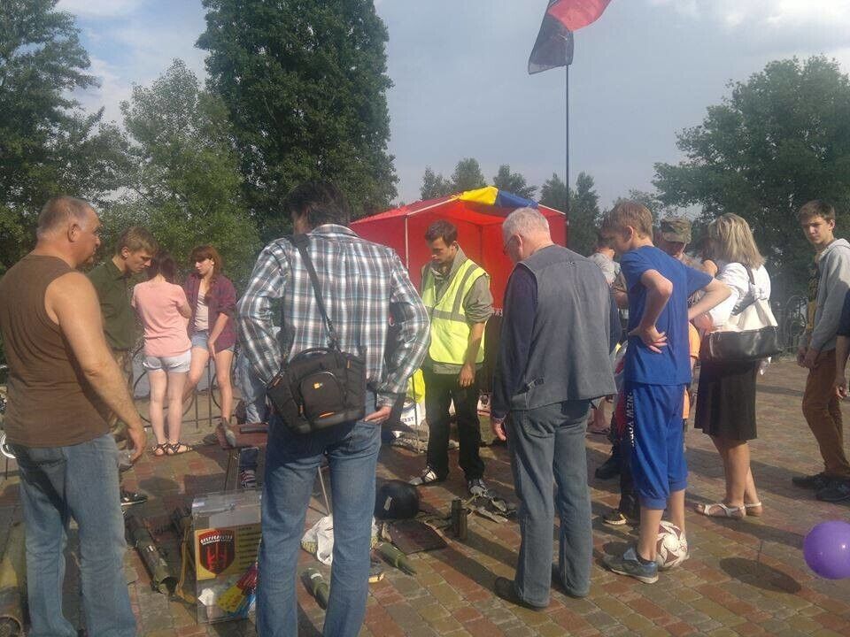 В прошедшие выходные (30–31 мая) активисты "Правого сектора" в Киеве при поддержке райгосадминистрации провели на Оболонской набережной патриотическую акцию, в рамках которой представили небольшую выставку оружия и предметов из зоны проведения антитеррористической операции на Донбассе, сообщает пресс-служба ПС. Каждый желающий мог принять участие в сборке-разборке автоматического оружия и пистолетов, а дети получили в подарок стреляные гильзы с передовой.