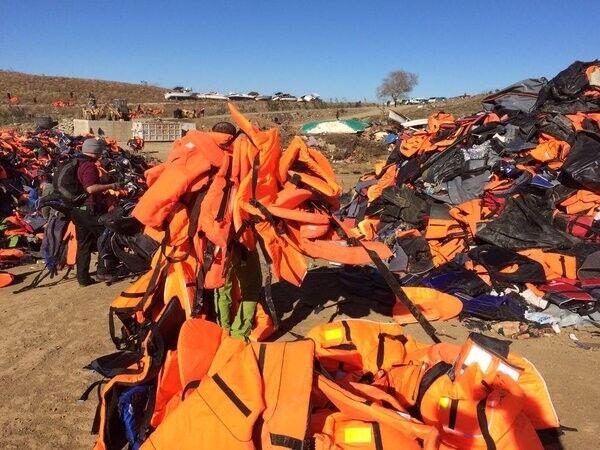 На острове Лесбос выложили знак мира из спасательных жилетов как символ поддержки беженцев. Фоторепортаж