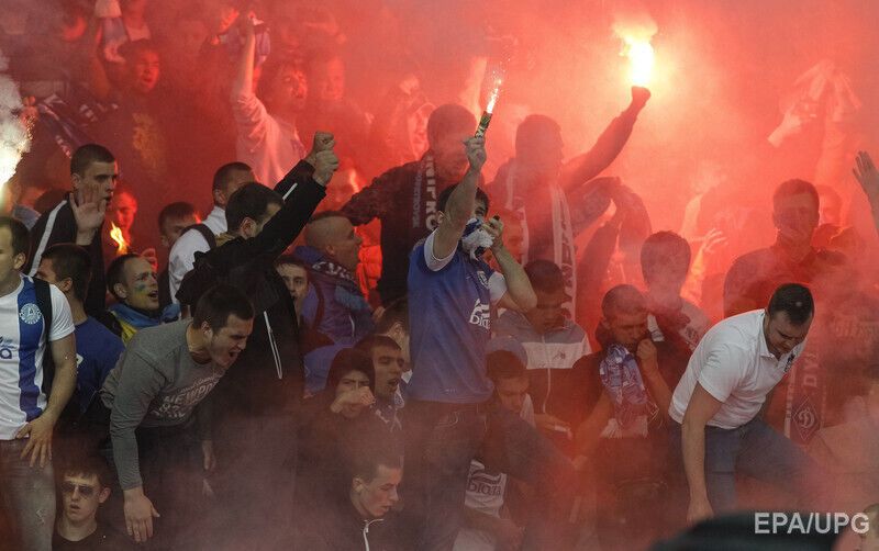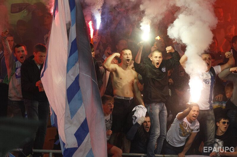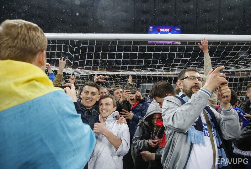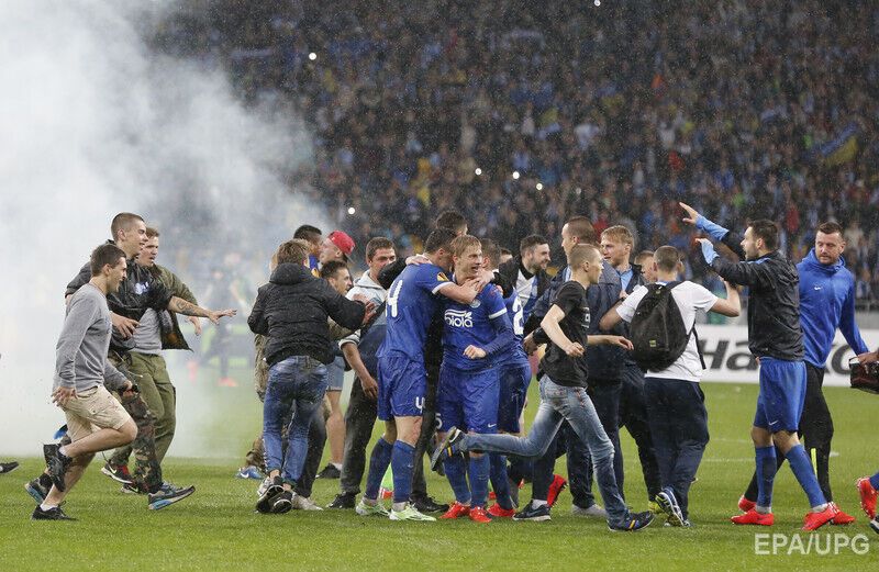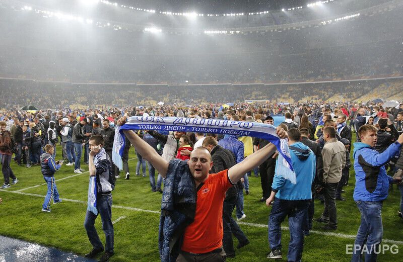 На стадионе в Киеве празднуют победу ФК "Днепр". Фоторепортаж