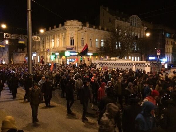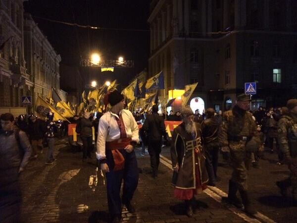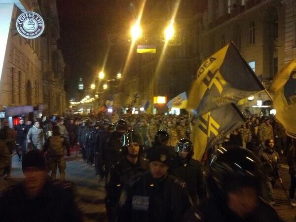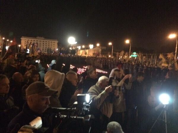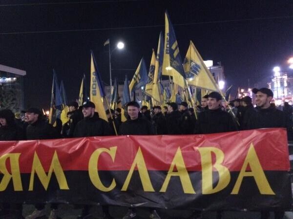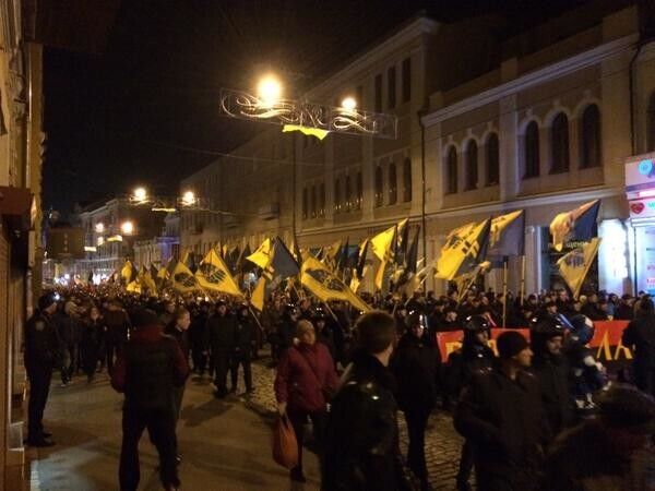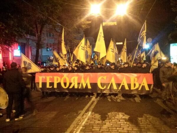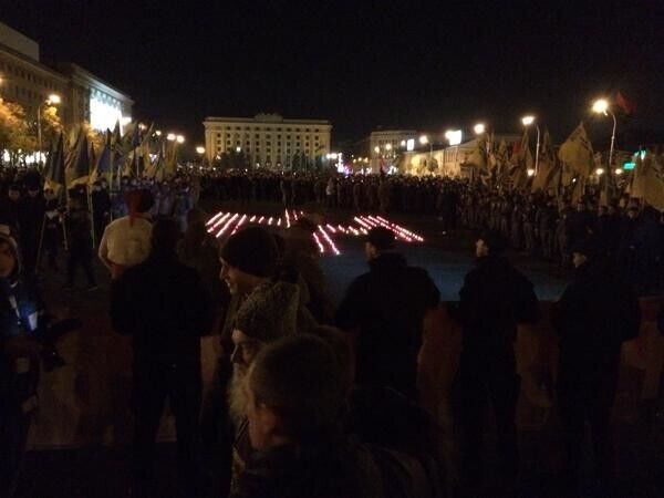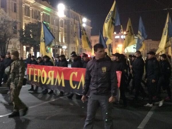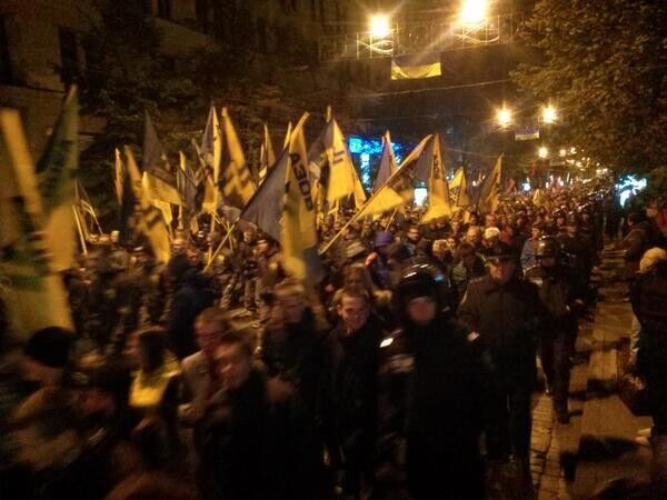 В Киеве в День защитника Украины на марш вышло несколько тысяч человек. После митинга на Михайловской площади националисты прошли к Лукьяновскому СИЗО, а оттуда – к изолятору в Косогорном переулке.