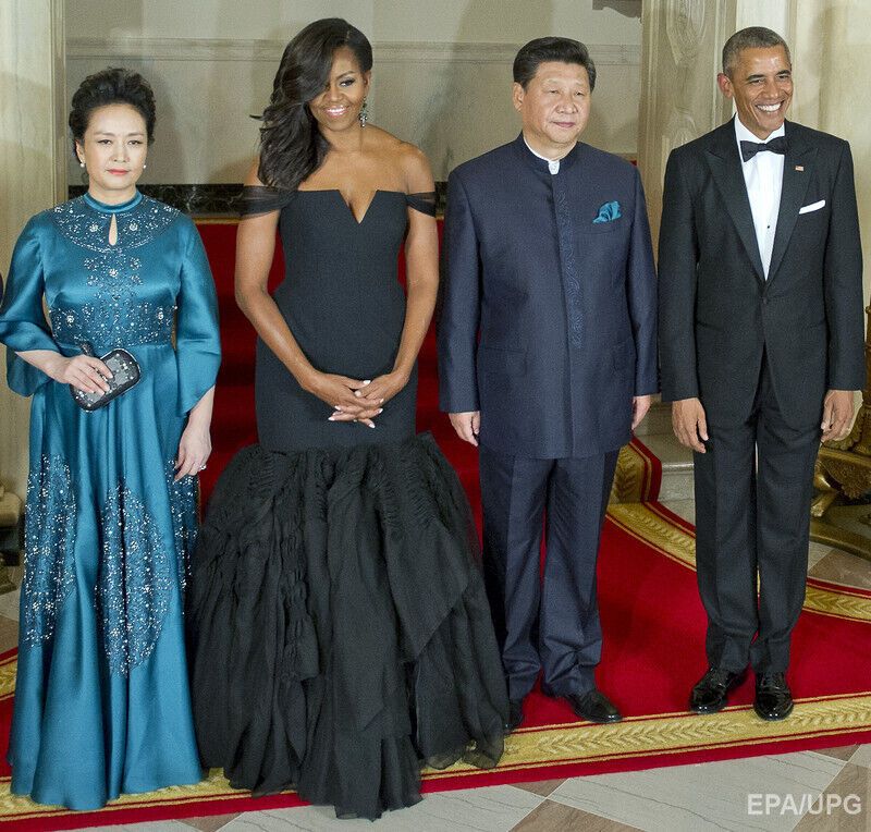 В пятницу, 25 сентября, в Белом доме состоялся торжественный ужин в честь официального визита президента и первой леди Китая, сообщает пресс-служба Белого дома. Первая леди США Мишель Обама явилась на него в вечернем платье от Веры Вонг.