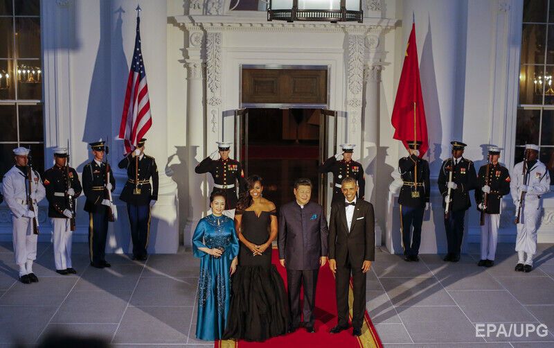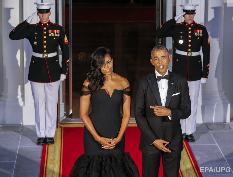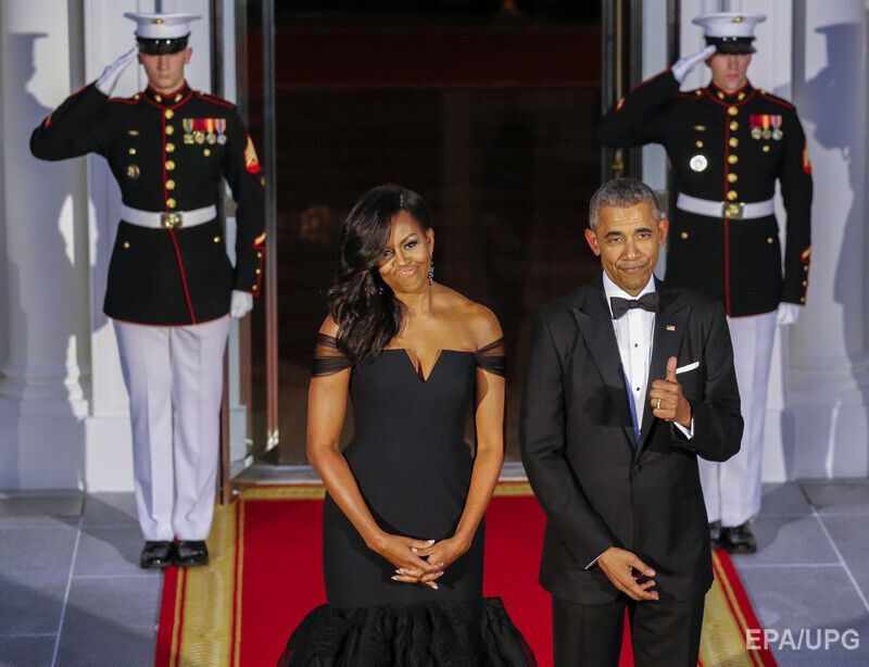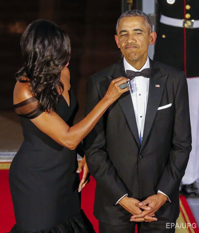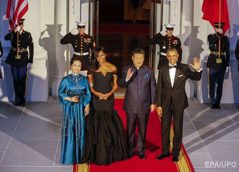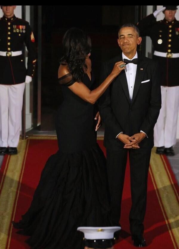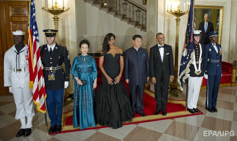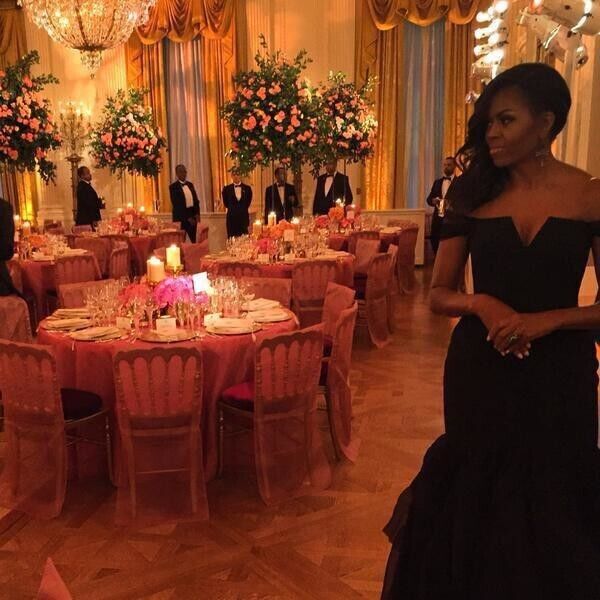Мишель Обама надела платье от Веры Вонг на тожественный ужин в честь визита китайского президента и его супруги. Фоторепортаж